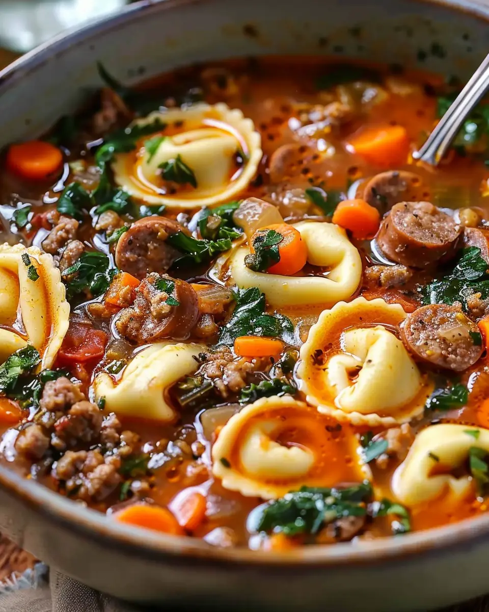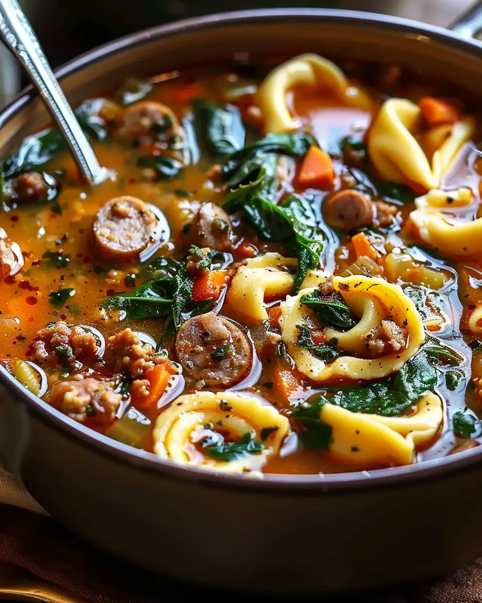 PrintAutumn Tortellini Soup with Sausage: A Cozy Family Favorite