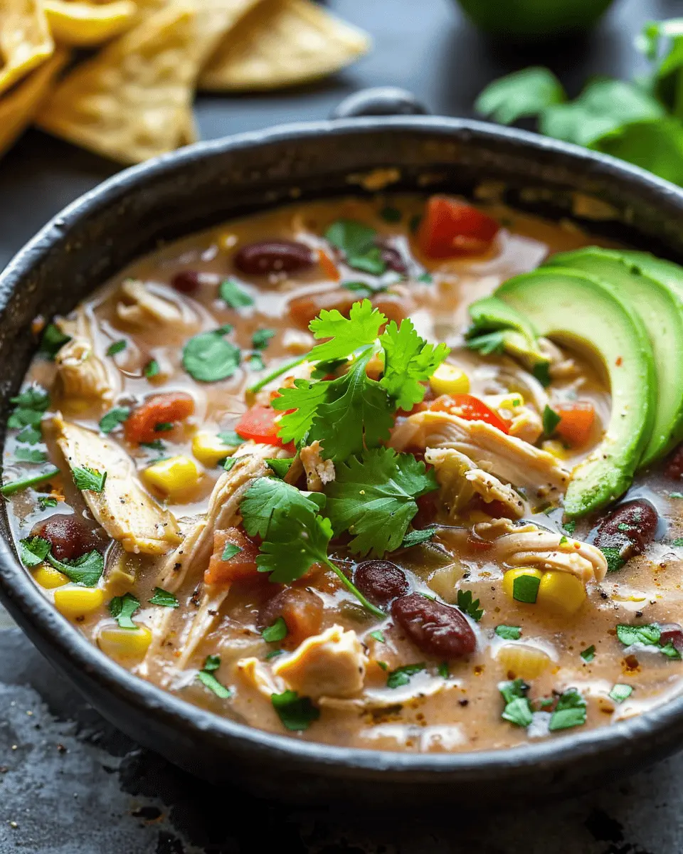 - Finally, for creaminess, stir in heavy cream or sour cream right before serving. This simple addition transforms your white chicken chili from good to irresistible.
