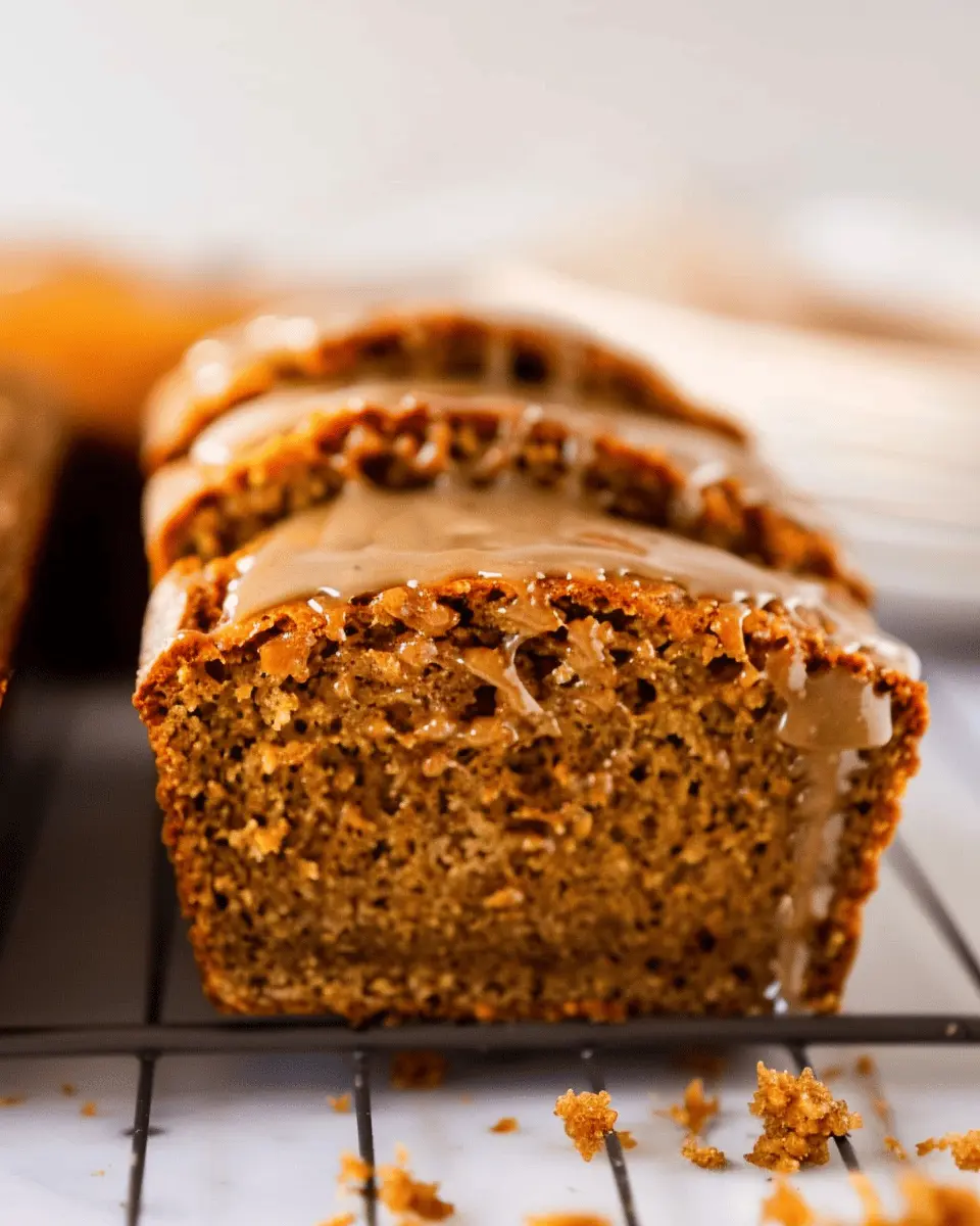 Experience the rich flavors of fall with this moist pumpkin bread topped with a sweet maple glaze.