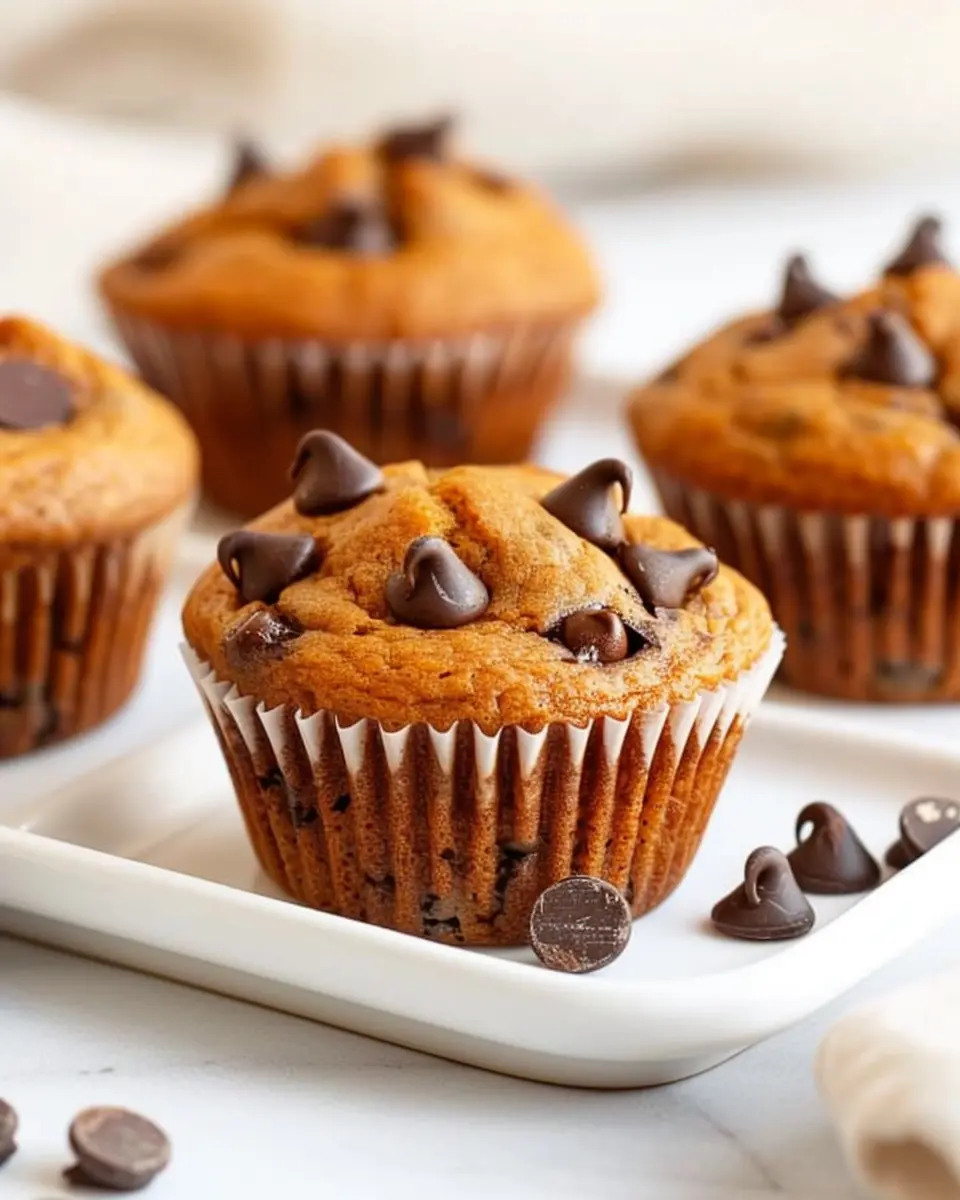 Delightful muffins that combine the warm flavors of pumpkin and chocolate chips, perfect for a cozy fall morning.