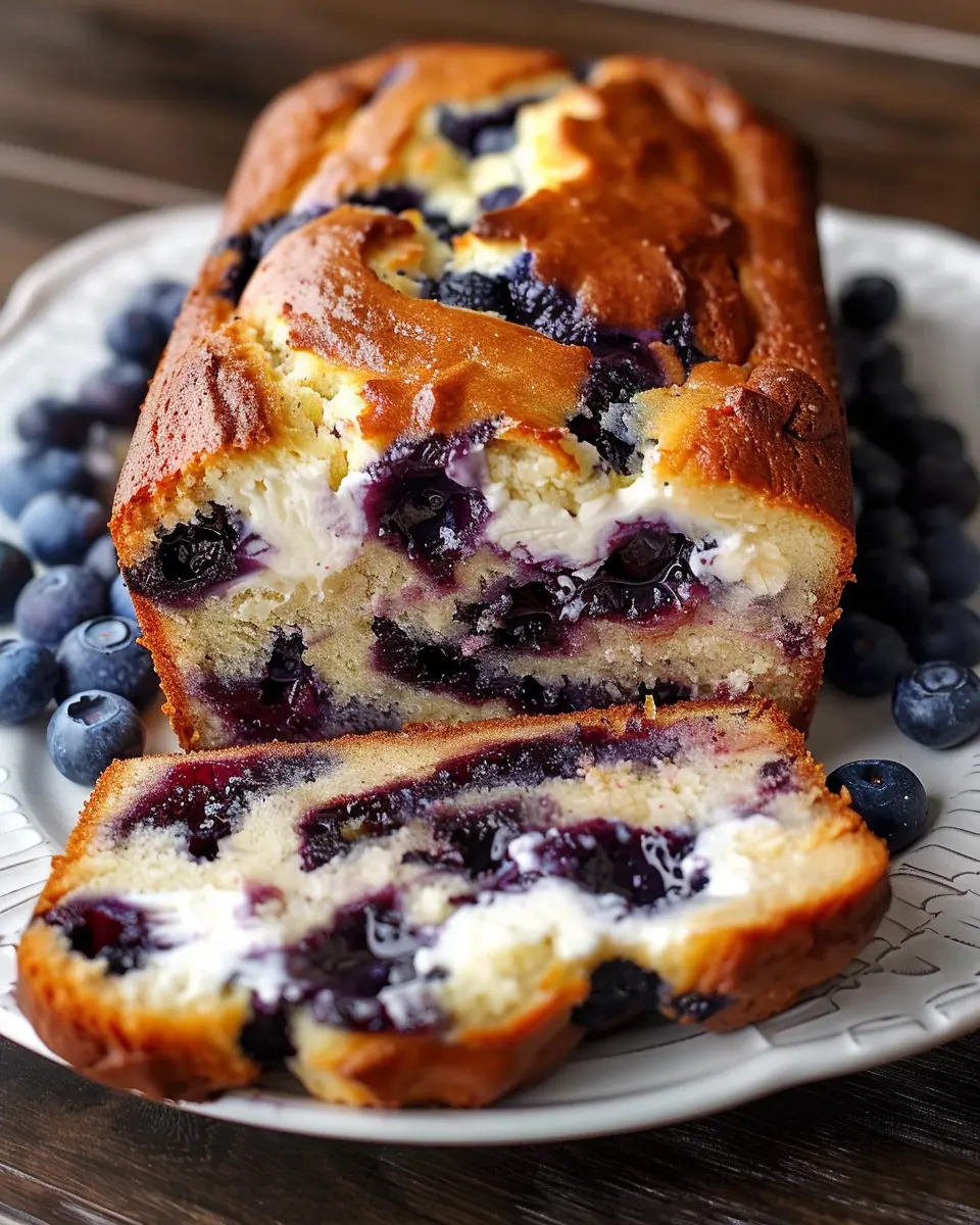 Experience the delightful blend of flavors in this moist and rich blueberry cream cheese loaf, perfect for breakfast or as a snack.