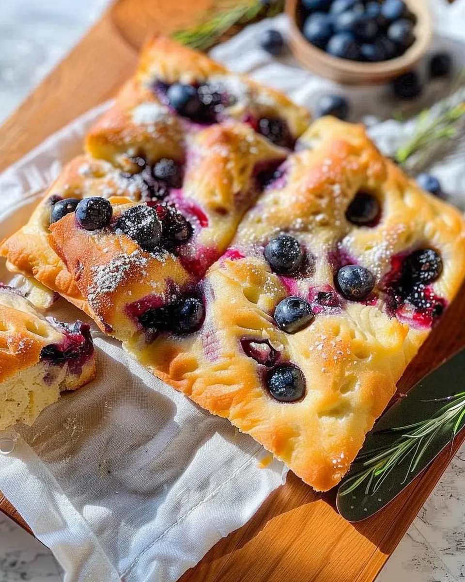 Absolutely! Using frozen blueberries is a convenient option and works wonderfully in this recipe. Just remember to toss them in a bit of flour before adding them to the dough. This helps prevent them from sinking to the bottom as the focaccia bakes. Additionally, there’s no need to thaw them; you can add them directly to your mixture for that delightful burst of flavor in every bite.