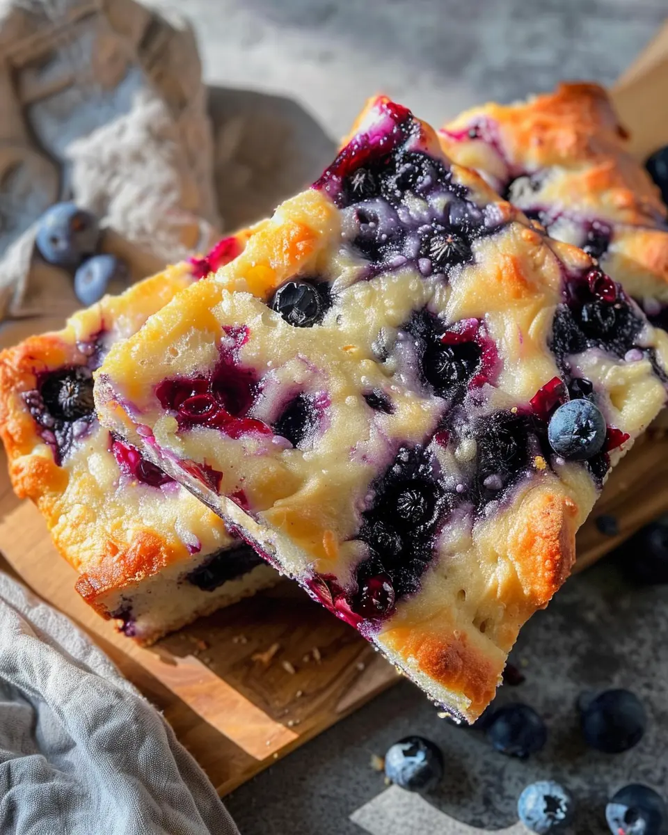 There’s nothing quite like enjoying Blueberry Focaccia Bread straight from the oven. The sweet aroma fills the room as you slice into its golden crust. Serve it warm with a light drizzle of honey or a simple sprinkle of powdered sugar for an effortless treat. Imagine unwinding after a long day, savoring each bite while sipping a warm cup of herbal tea or your favorite coffee blend. It’s a delightful way to indulge without feeling guilty!