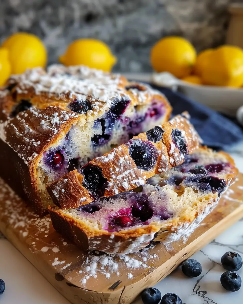 A delightful bread combining the tangy flavors of lemon and blueberry with the creaminess of cream cheese.