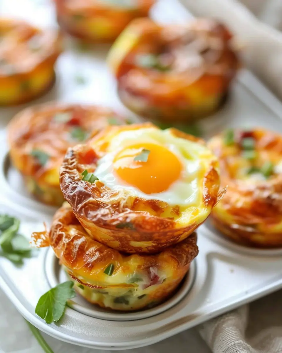 - Bake: Place the muffin tin in the preheated oven and bake for about 18–20 minutes. You’ll know they’re done when they puff up and are set in the middle.