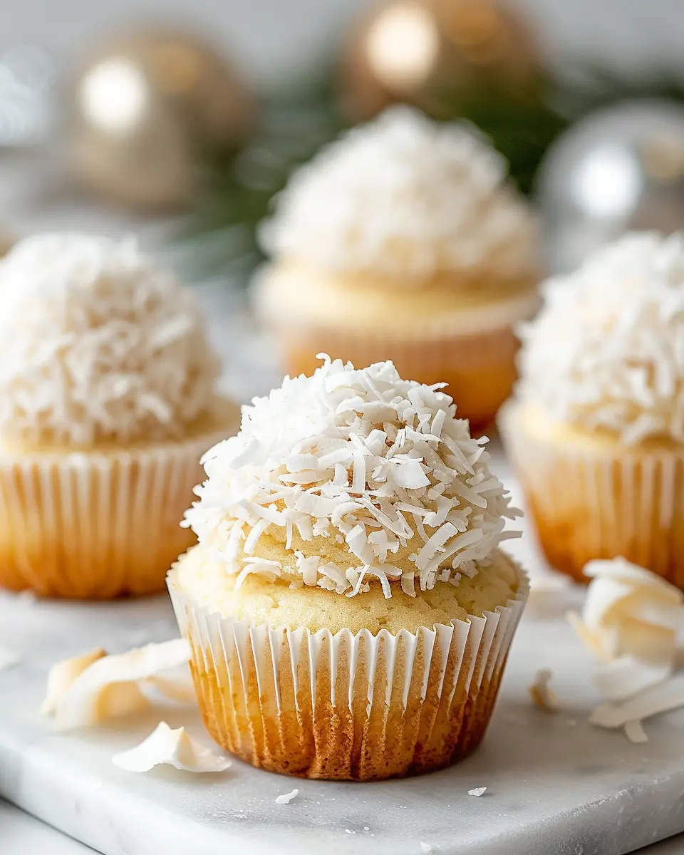 PrintCoconut Snowball Cupcakes: Easy Indulgence for Coconut Lovers