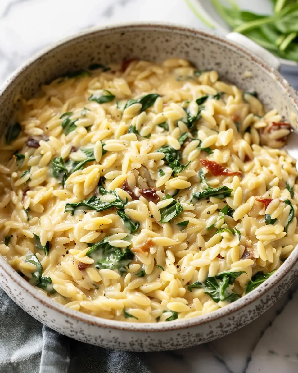 Creamy Tuscan Orzo with Spinach and Sun-Dried Tomatoes
