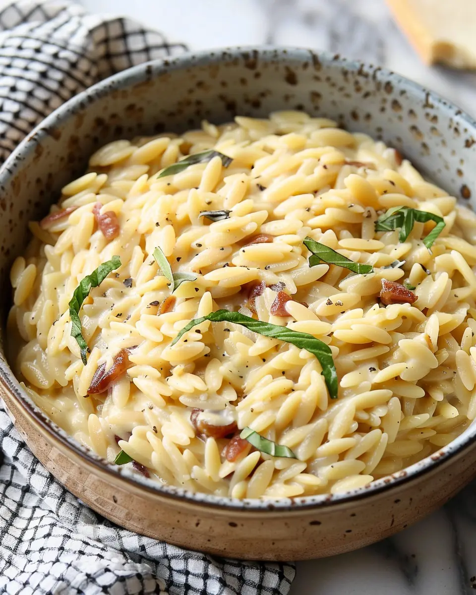PrintCreamy Tuscan Orzo with Turkey Bacon: A Cozy Comfort Dish