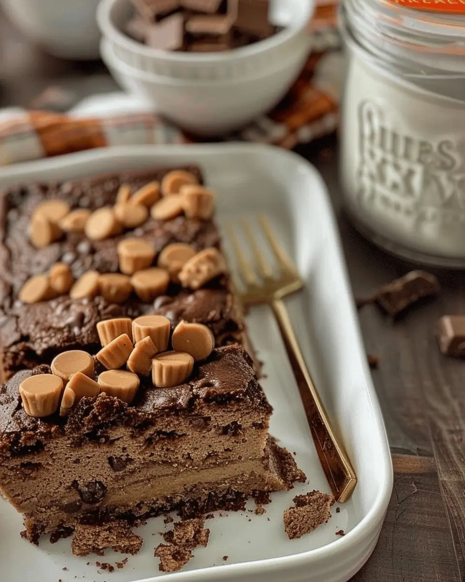 The Easiest, Fudgiest Peanut Butter Cup Dump Cake Ever is a delicious and simple dessert that combines the rich flavors of chocolate and peanut butter.