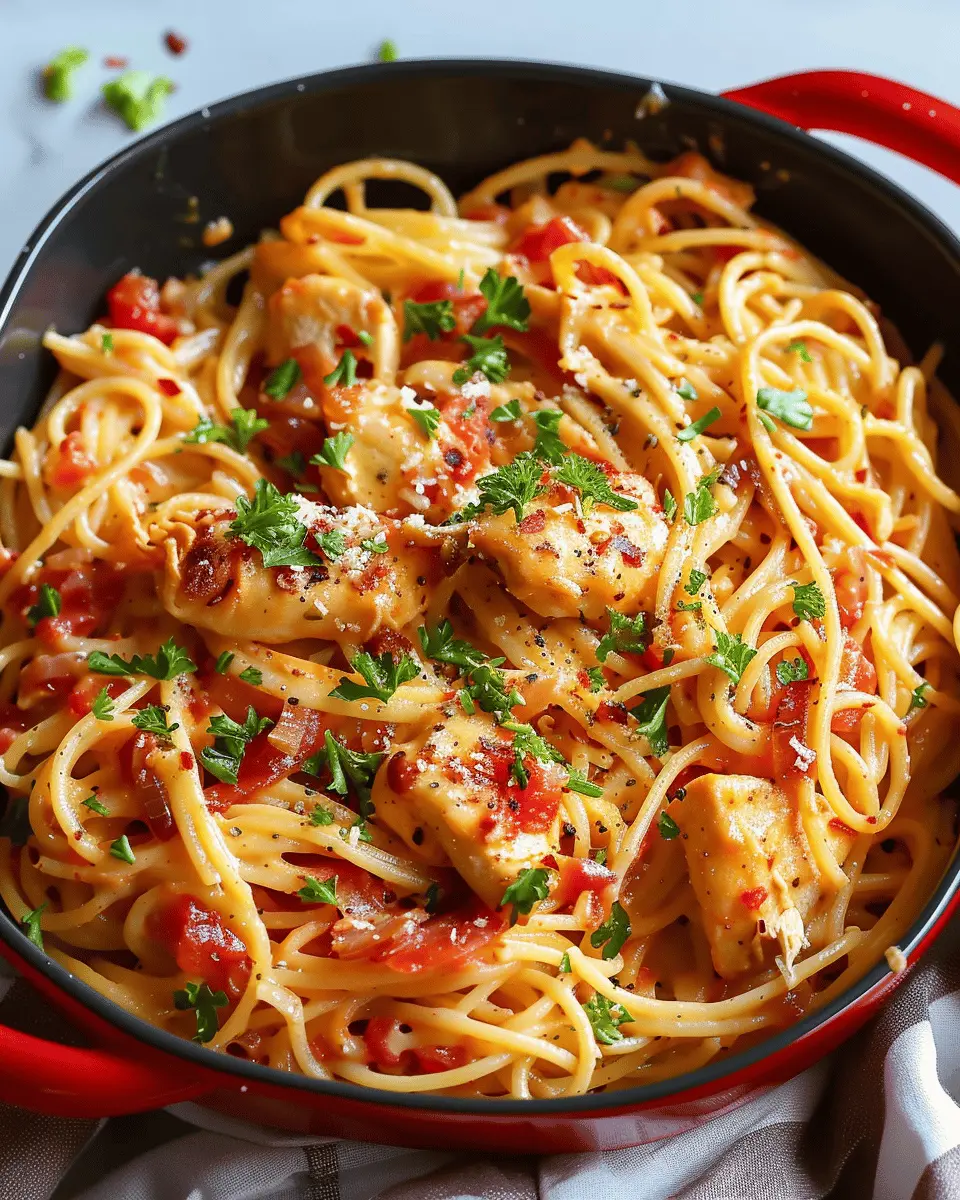 Creating a visually appealing plate can elevate your easy cheap dinner ideas from simple to stunning. Start with a generous scoop of your Chicken Spaghetti with Rotel and Velveeta at the center of a wide, shallow bowl. Consider garnishing with a sprinkle of chopped fresh parsley or cilantro for a pop of color. You can even add a wedge of lime on the side; it complements the flavors beautifully! Using contrasting colors in your plating can make the dish more appetizing, so think about adding a vibrant salad alongside.