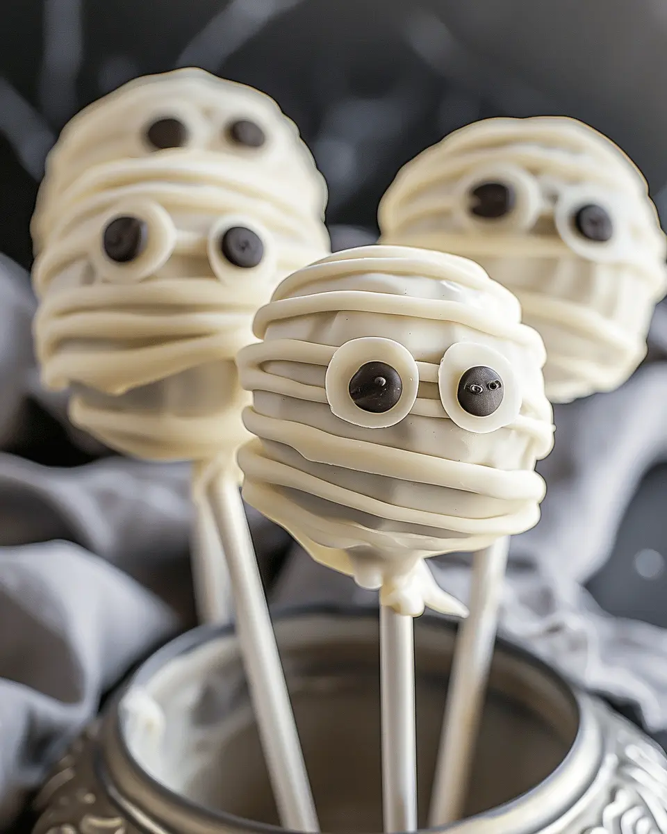 • Vegan Mummy Pops: Swap out traditional ingredients for plant-based options. Use vegan cake mix and substitute egg with applesauce or flaxseed. Instead of frosting, try a drizzle of chocolate melted coconut oil for that mummy look.