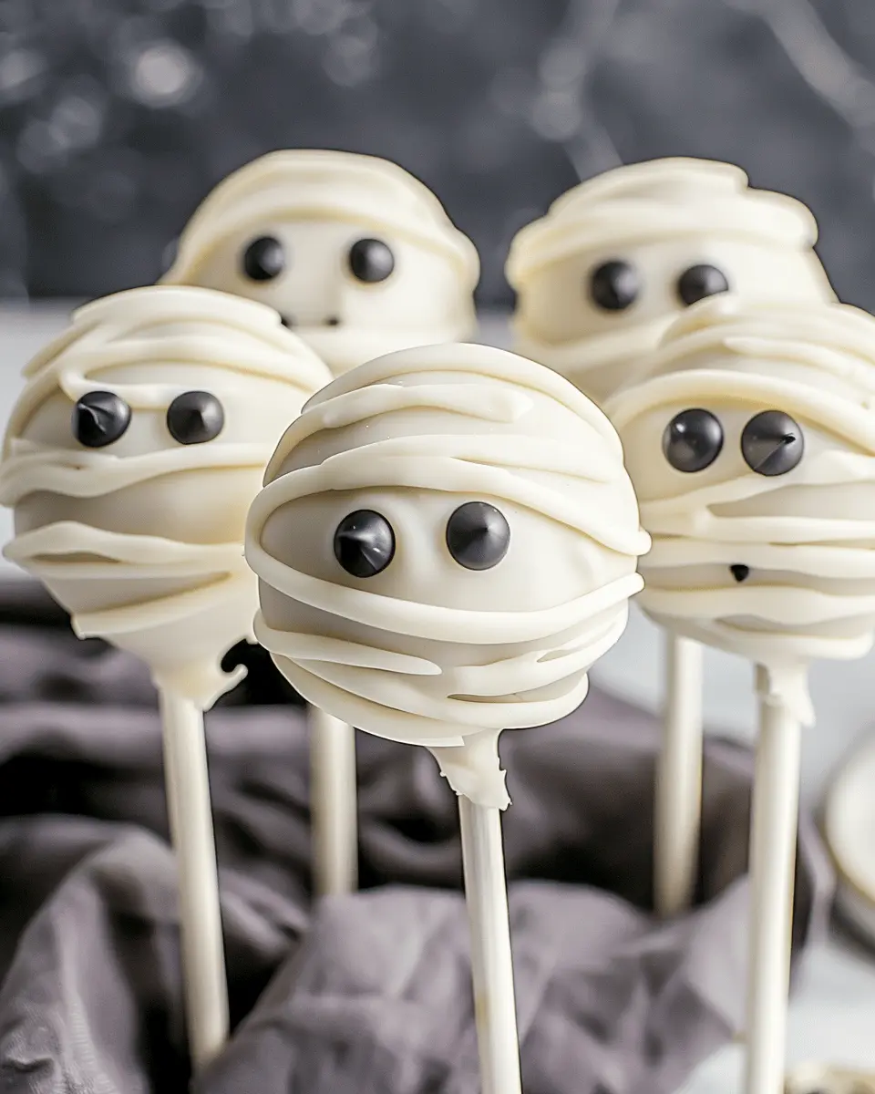 • Mummy Cake Pops: Perfectly portable and fun to decorate!