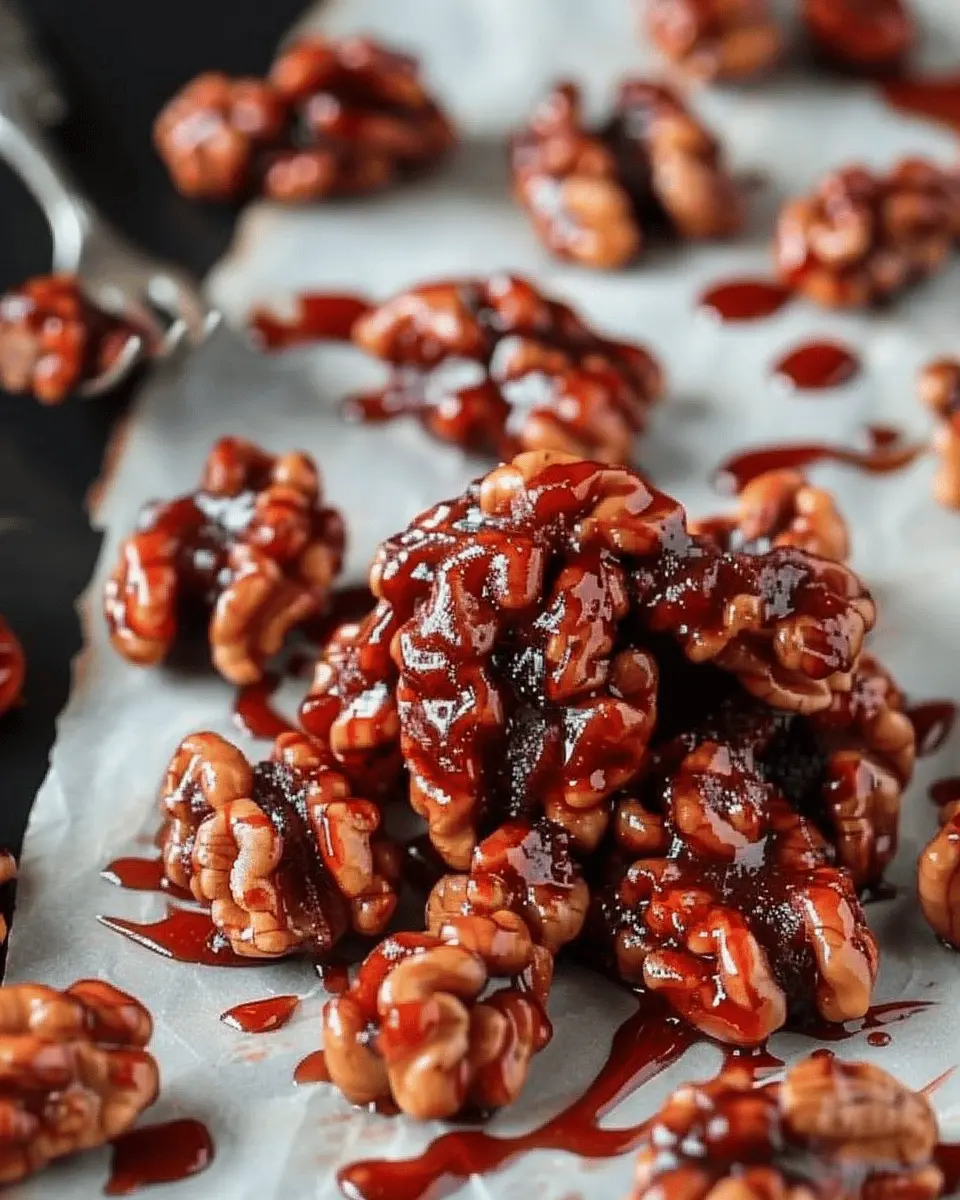 • Let them cool: Spread the glazed walnuts onto a baking sheet lined with parchment paper. Allow them to cool completely, which will harden the candy coating.