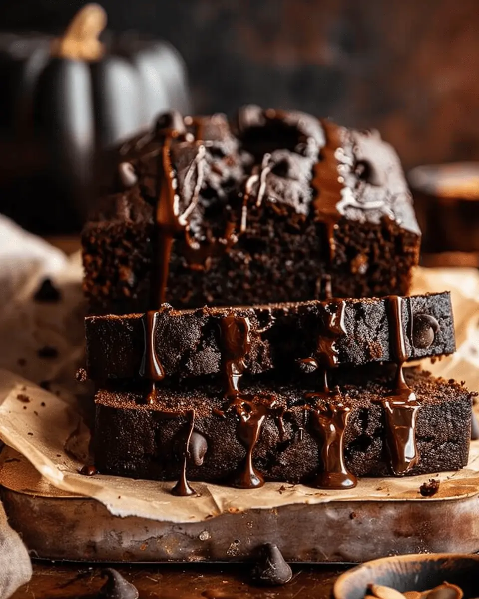 Elevate your Moist Chocolate Pumpkin Bread by presenting it on whimsical serving platters that capture the spirit of Halloween. Think about using: