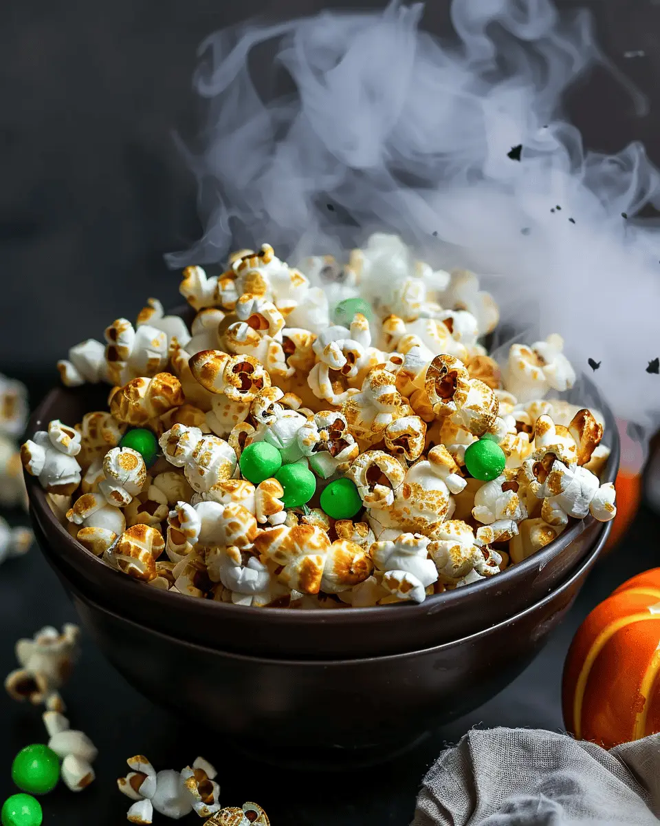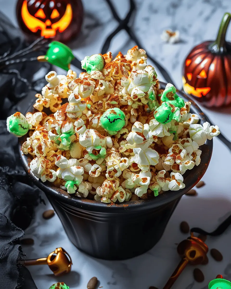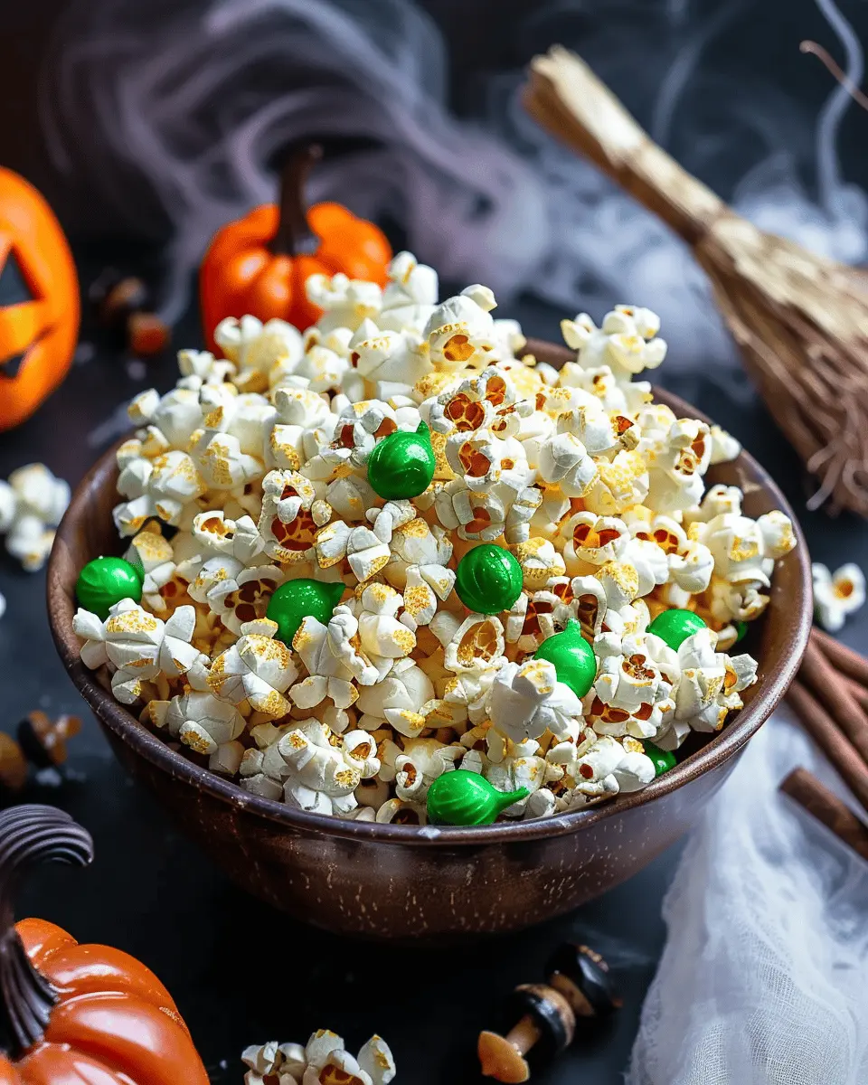 When it comes to easy Halloween food ideas, presentation is everything! Transform your Witches Brew Popcorn into a hauntingly delightful centerpiece. Use a large black cauldron or a clear glass bowl filled with dry ice (safely handled, of course) for a foggy effect. Consider sprinkling edible glitter or colorful Halloween sprinkles on top for a fun touch. Serve with spooky striped straws or black paper cups to add to the theme, creating a visual feast that invites guests to dig in.