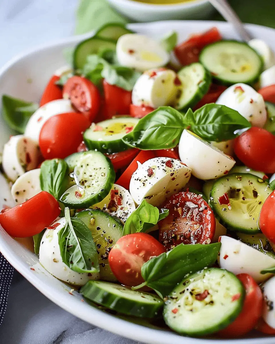 By following these steps and embracing creativity, preparing easy side dishes like Cucumber Caprese Salad can become a delightful routine in your cooking journey. Enjoy the process, experiment, and most importantly, savor every bite!