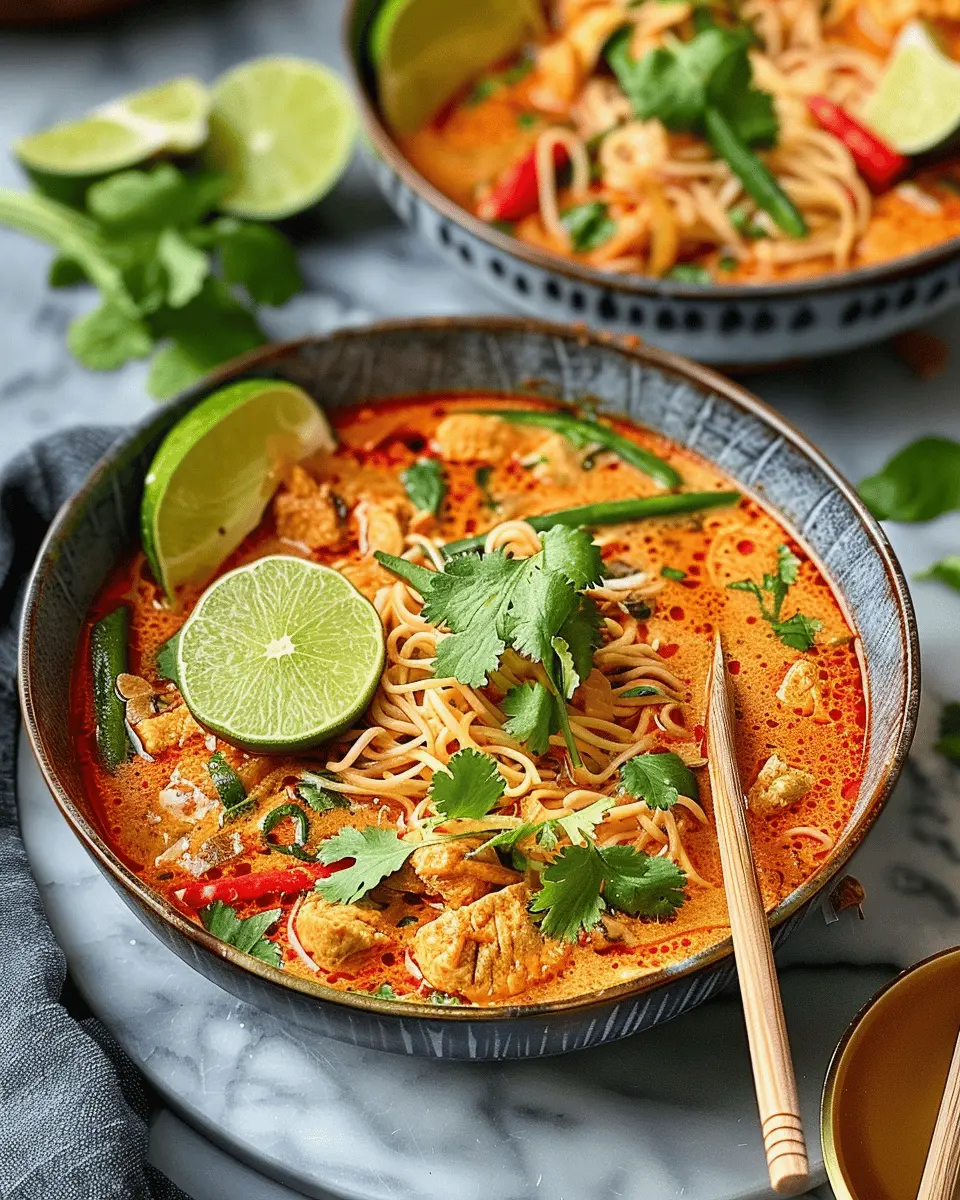 Getting organized is key! For this Thai Red Curry Noodle Soup, you’ll need about 15 minutes for prep. Gather your ingredients—fresh veggies, protein, and spices. The time spent here sets the stage for a delightful cooking experience.