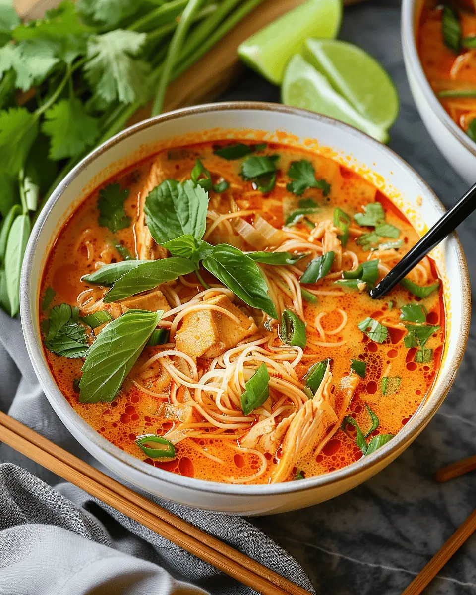 When it comes to easy soup recipes like Thai Red Curry Noodle Soup, the right garnishes can elevate your dish from delightful to extraordinary. Consider topping your soup with: