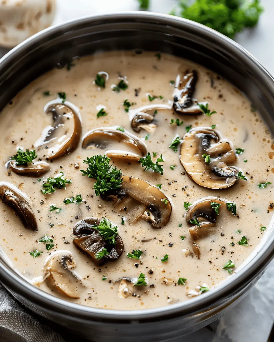 A comforting and easy soup recipe featuring mushrooms and turkey bacon, perfect for cozy dinners.