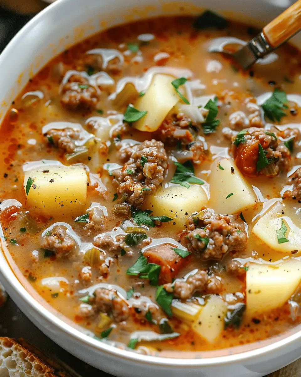 Enjoy this Cozy Italian Sausage and Potato Soup, an easy and hearty dish perfect for any occasion.