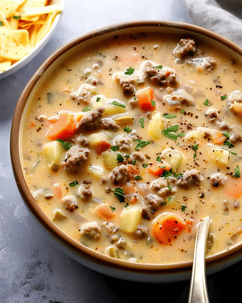 Are you ready to dive into the comforting world of easy soup recipes? An ideal dish for a busy weeknight or a cozy weekend gathering, cheeseburger soup is warm, nourishing, and very satisfying. Let’s walk through the steps to bring this delightful soup to your table!