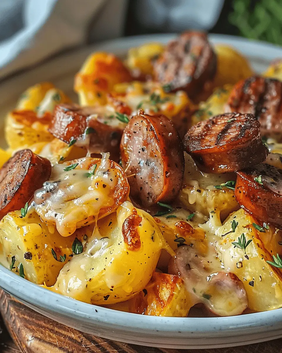 - Colorful Platters: Use vibrant serving platters to showcase your cheesy ranch potatoes and smoked sausage, complemented by a sprinkle of fresh herbs.
