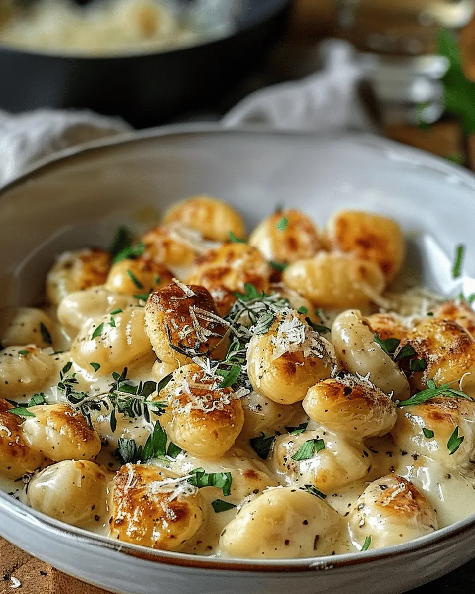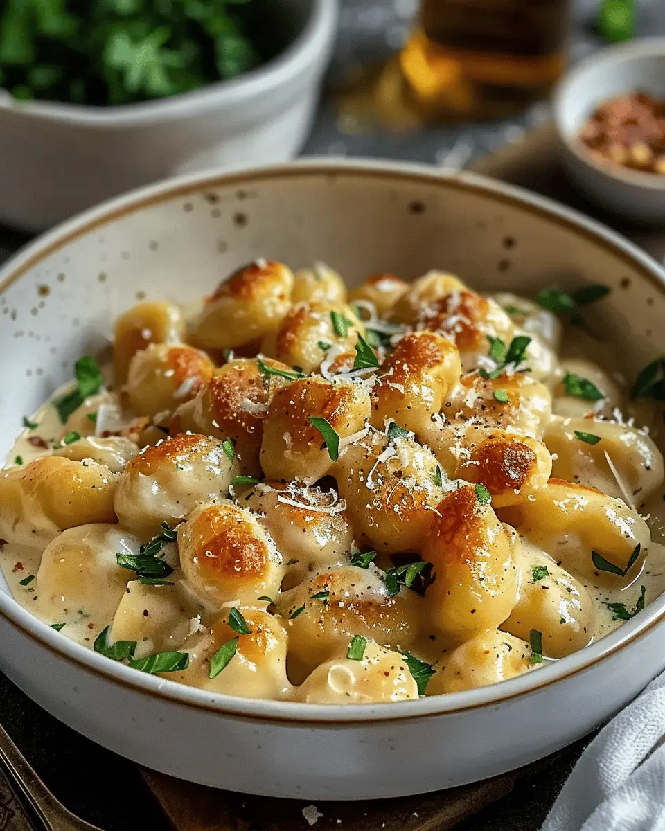 - Color Contrast: Use a colorful plate to highlight the creamy white gnocchi against a side of vibrant vegetables.