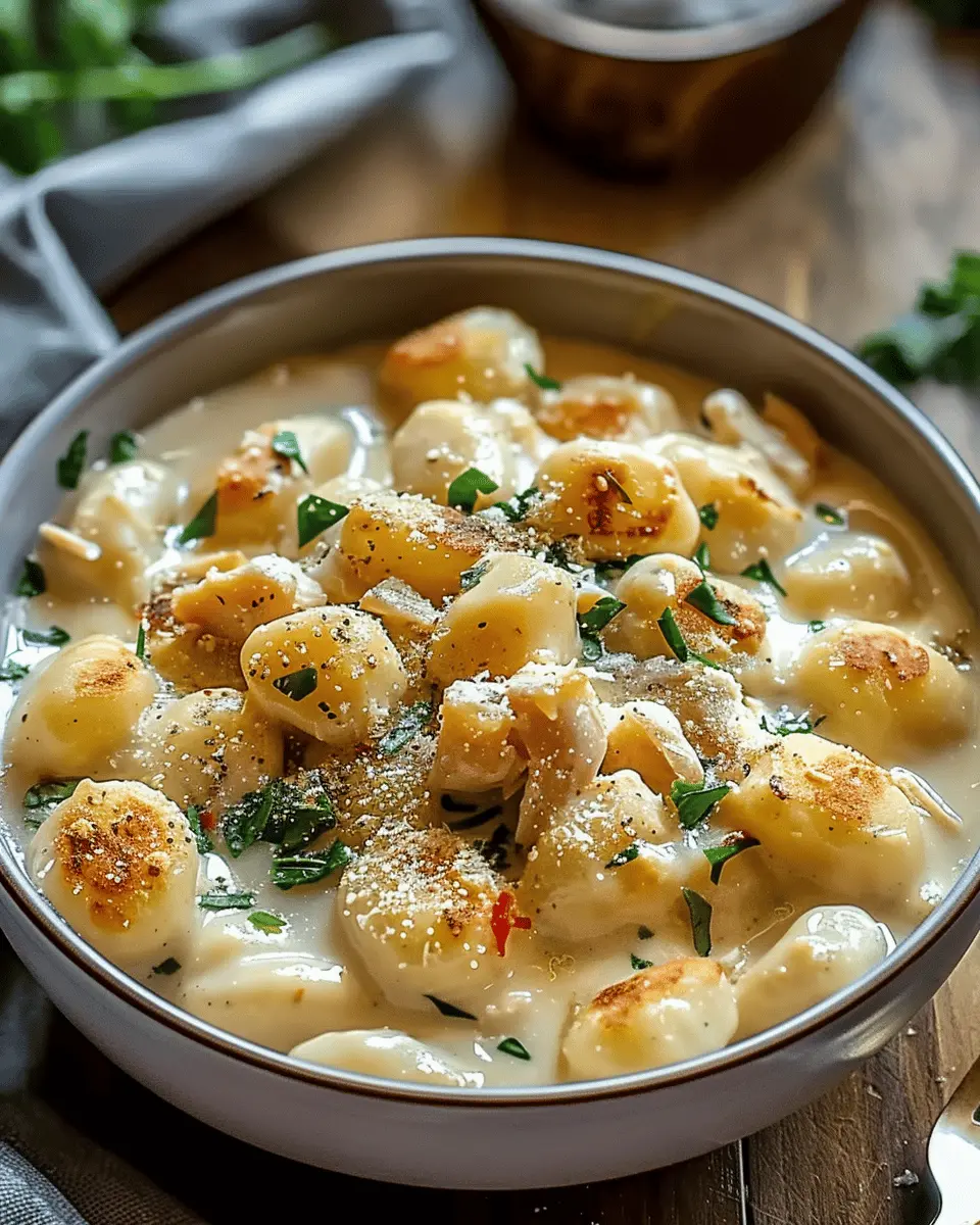 - Layer Your Dish: Serve the Creamy Crack Chicken Gnocchi in a shallow bowl, topped with a sprinkle of fresh herbs and a dash of parmesan for that perfect finishing touch.