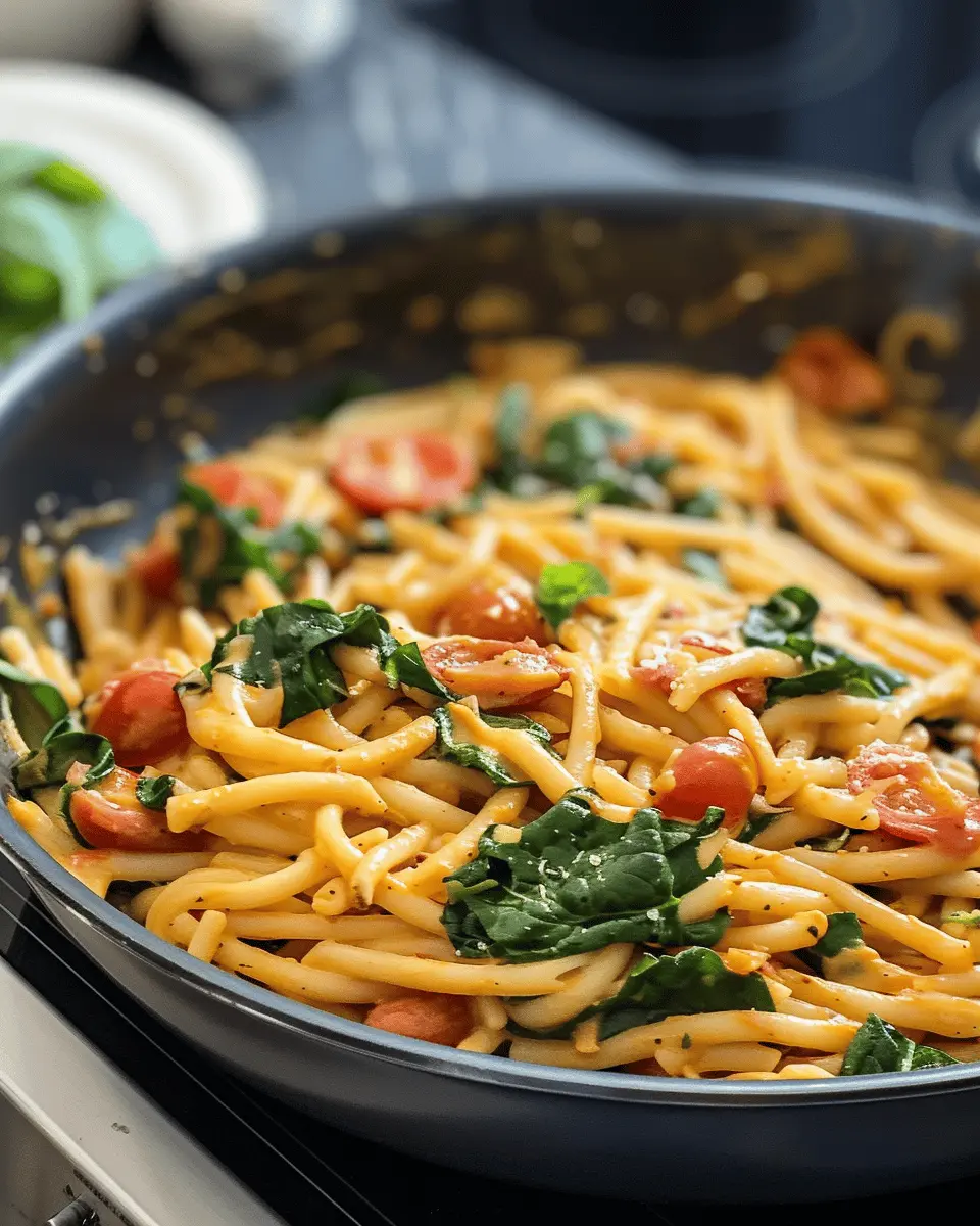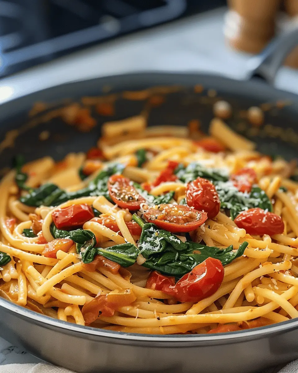 Keywords: Easy Summer Meals Ideas, One-Pot Pasta, Spinach Tomato Pasta