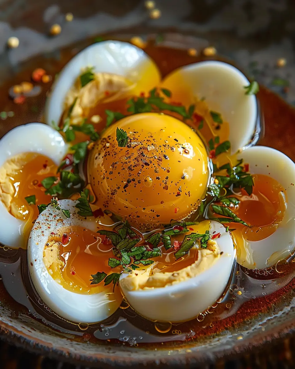 - Add the peeled eggs to the marinade, ensuring they are fully submerged. Refrigerate for at least 2 hours.