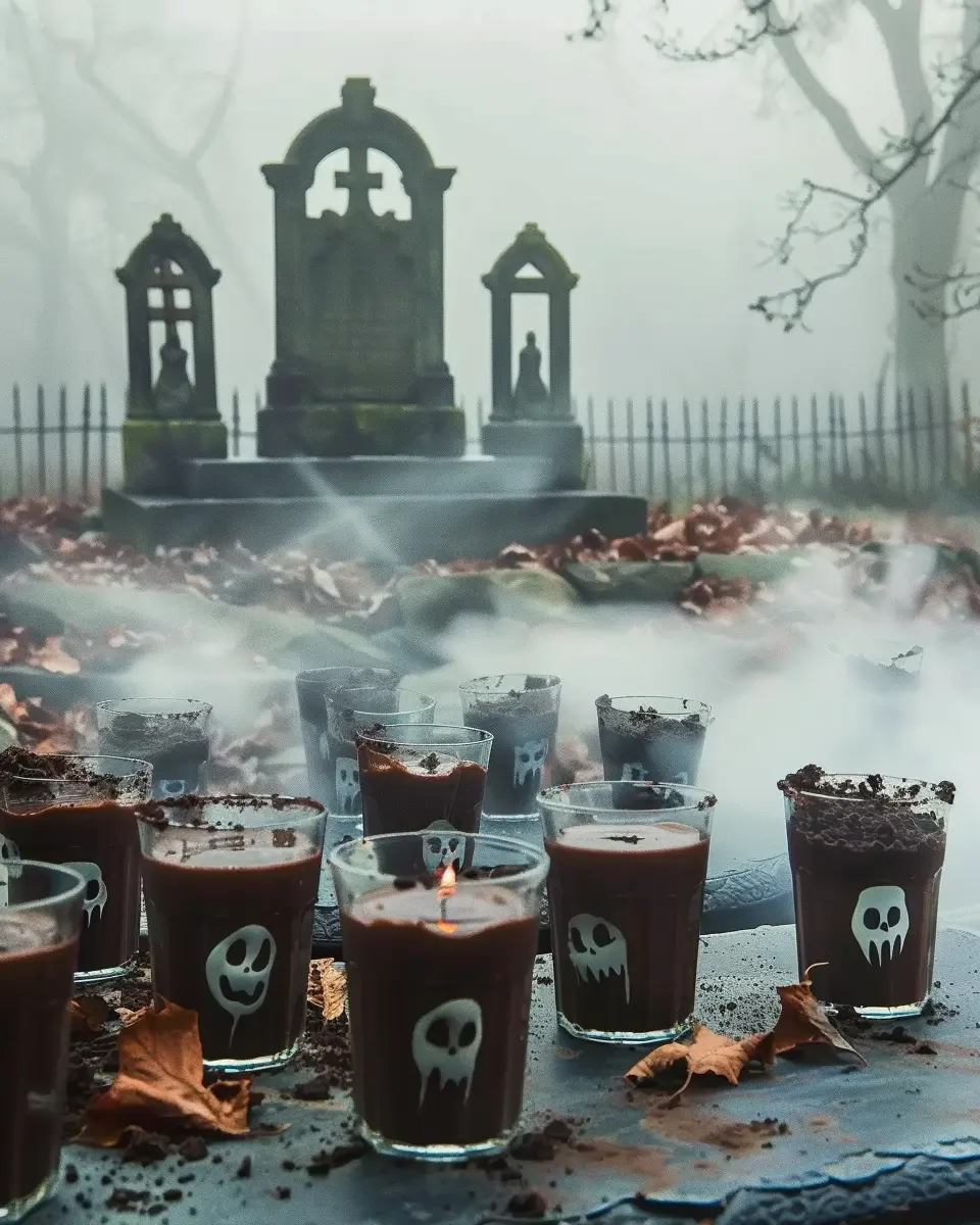 Creative glassware: Serve in small shot glasses that resemble mini gravestones. Some festive ones can even have skull shapes for that extra thrill. You can find unique options online for this!