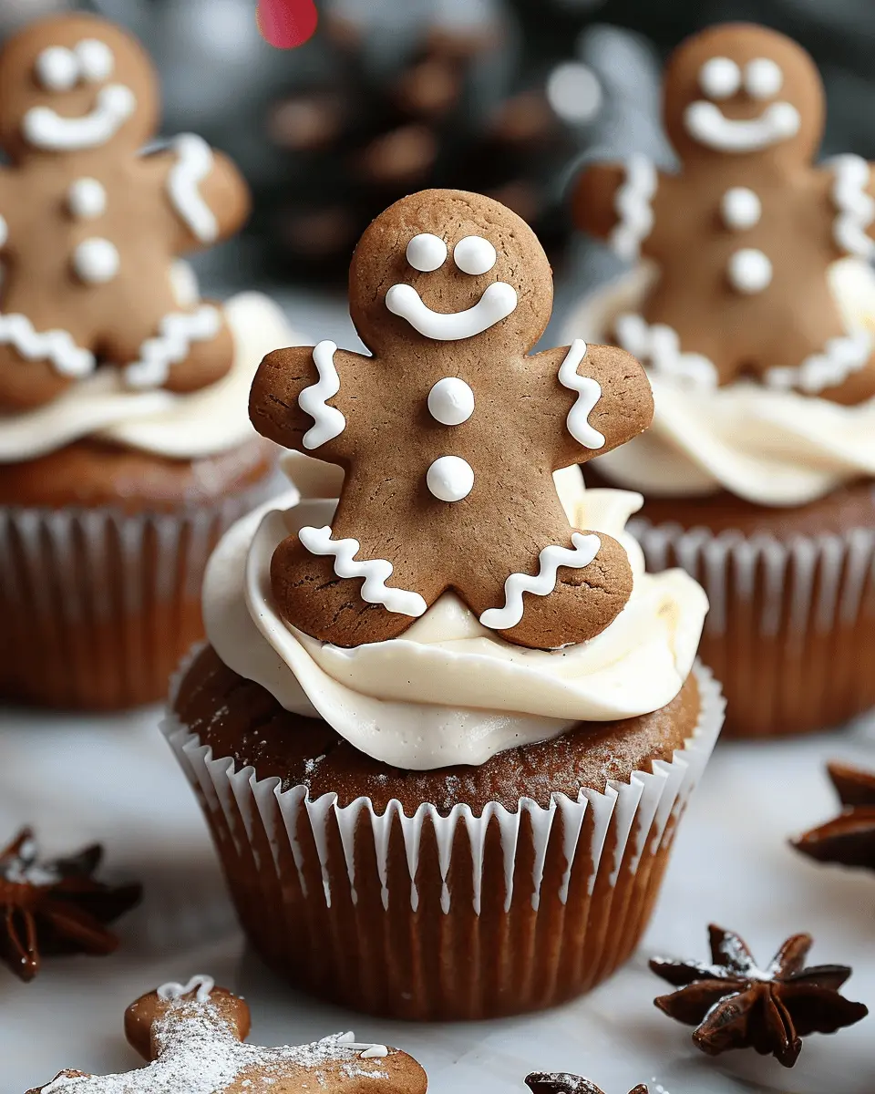 Delightful gingerbread man cupcakes that bring holiday cheer to your table.