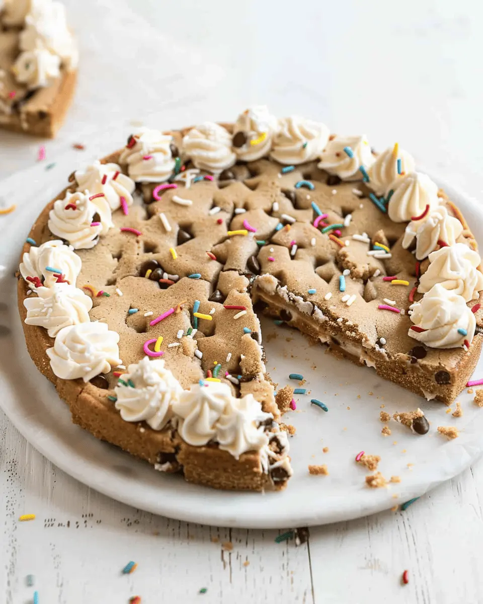 Want to add some festive flair to your dessert? The funfetti cookie cake will surely bring joy to any occasion. Just mix rainbow sprinkles into your cookie dough before baking. This cheerful dessert is perfect for birthdays or celebrations, and it’s sure to put a smile on everyone’s face. If you’re feeling fancy, consider frosting it with cream cheese icing for an elegant touch.