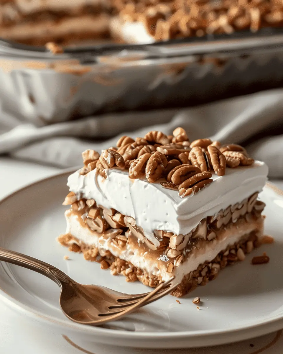 Keywords: Pecan Pie Lasagna, No-Bake Dessert, Holiday Dessert