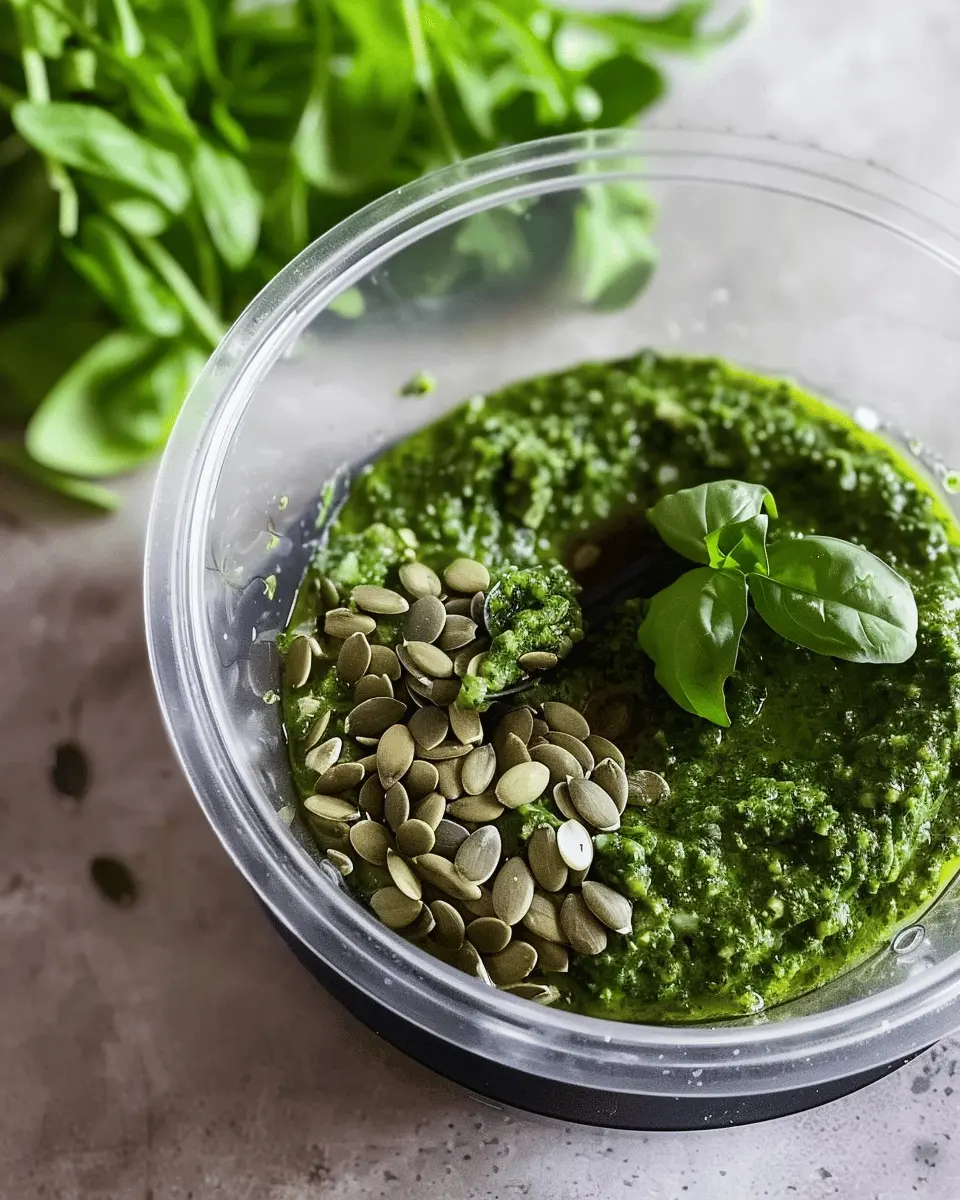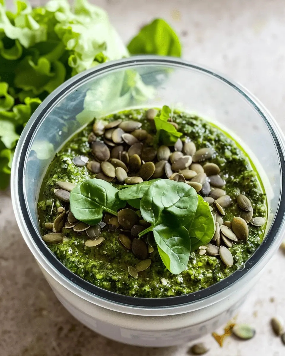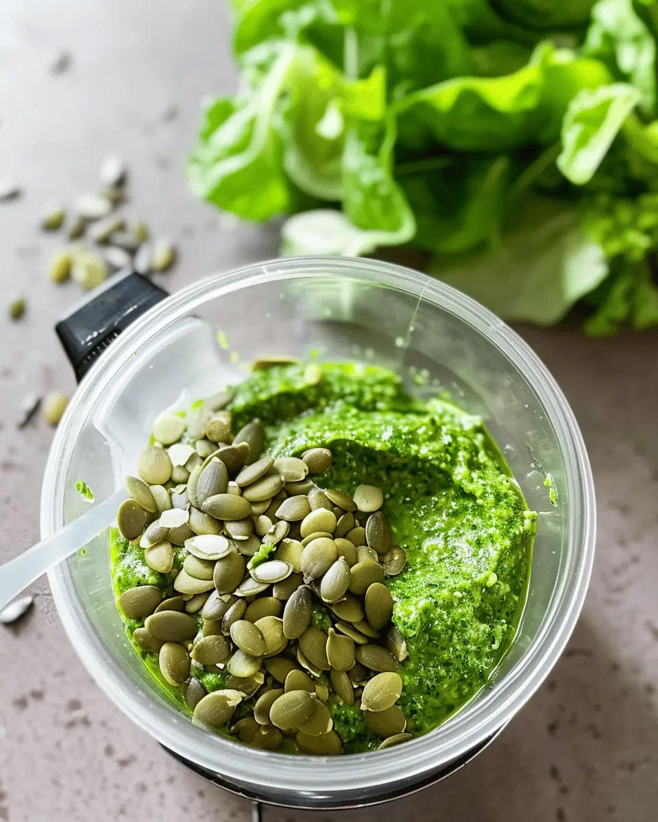 With just a few minutes and minimal effort, you’ll have a vibrant, dairy-free pumpkin seed pesto that’s ready to impress.