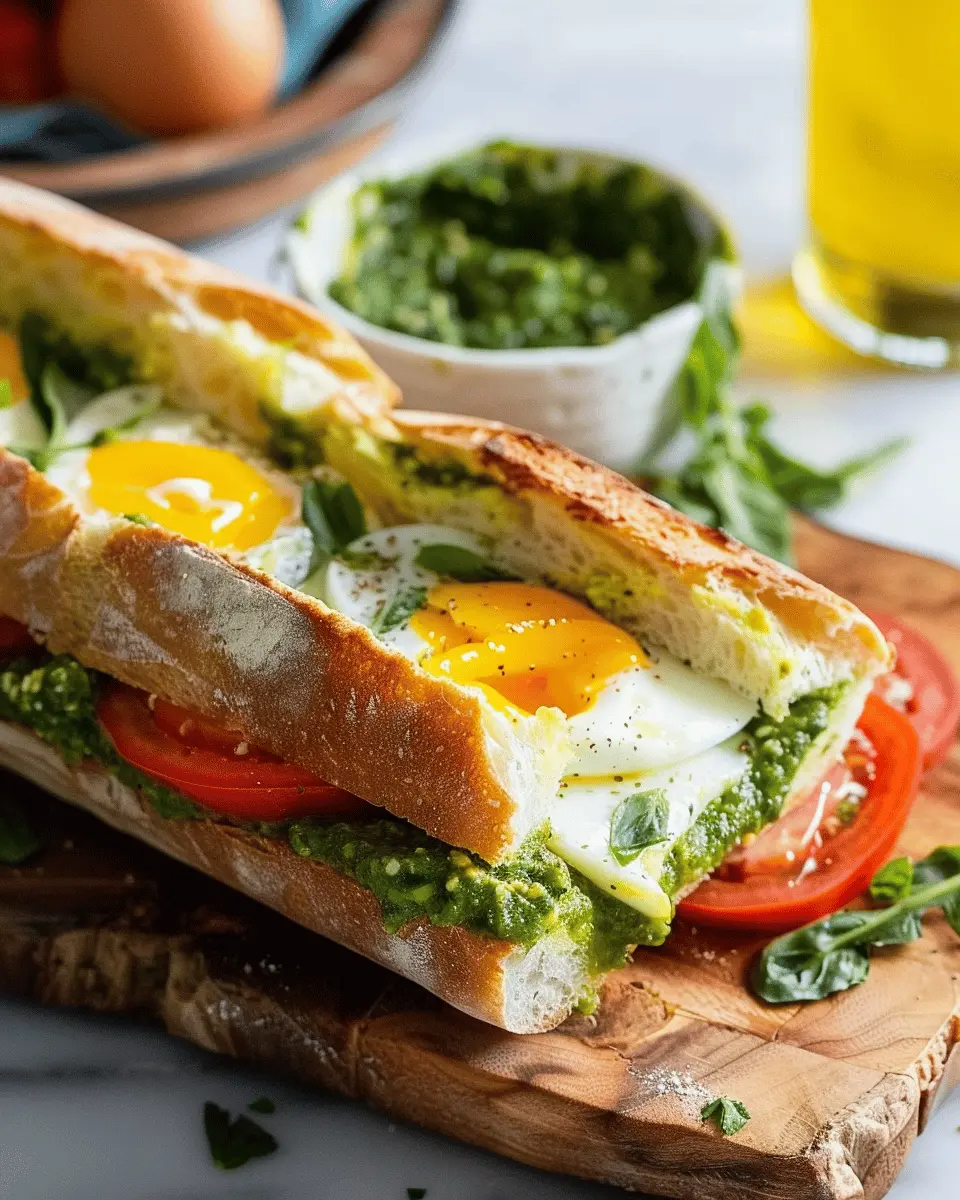 The sauce can elevate your sandwich to a whole new level. For our Pesto and Egg Baguette, homemade or store-bought pesto is a fantastic choice: