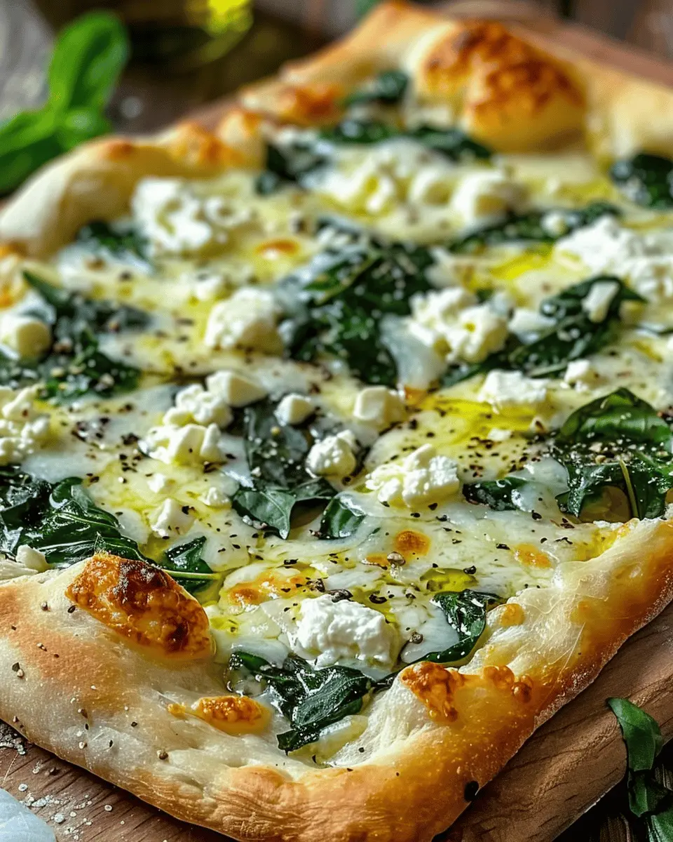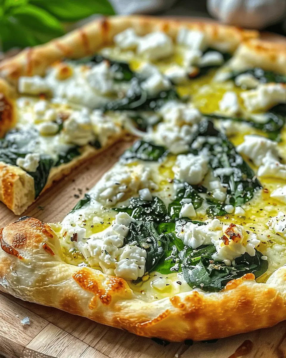 Discover a simple and delicious recipe for Greek Roasted Garlic Spinach White Pizza that combines vibrant flavors and easy preparation.