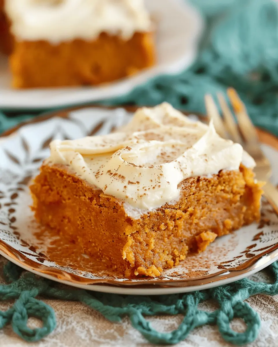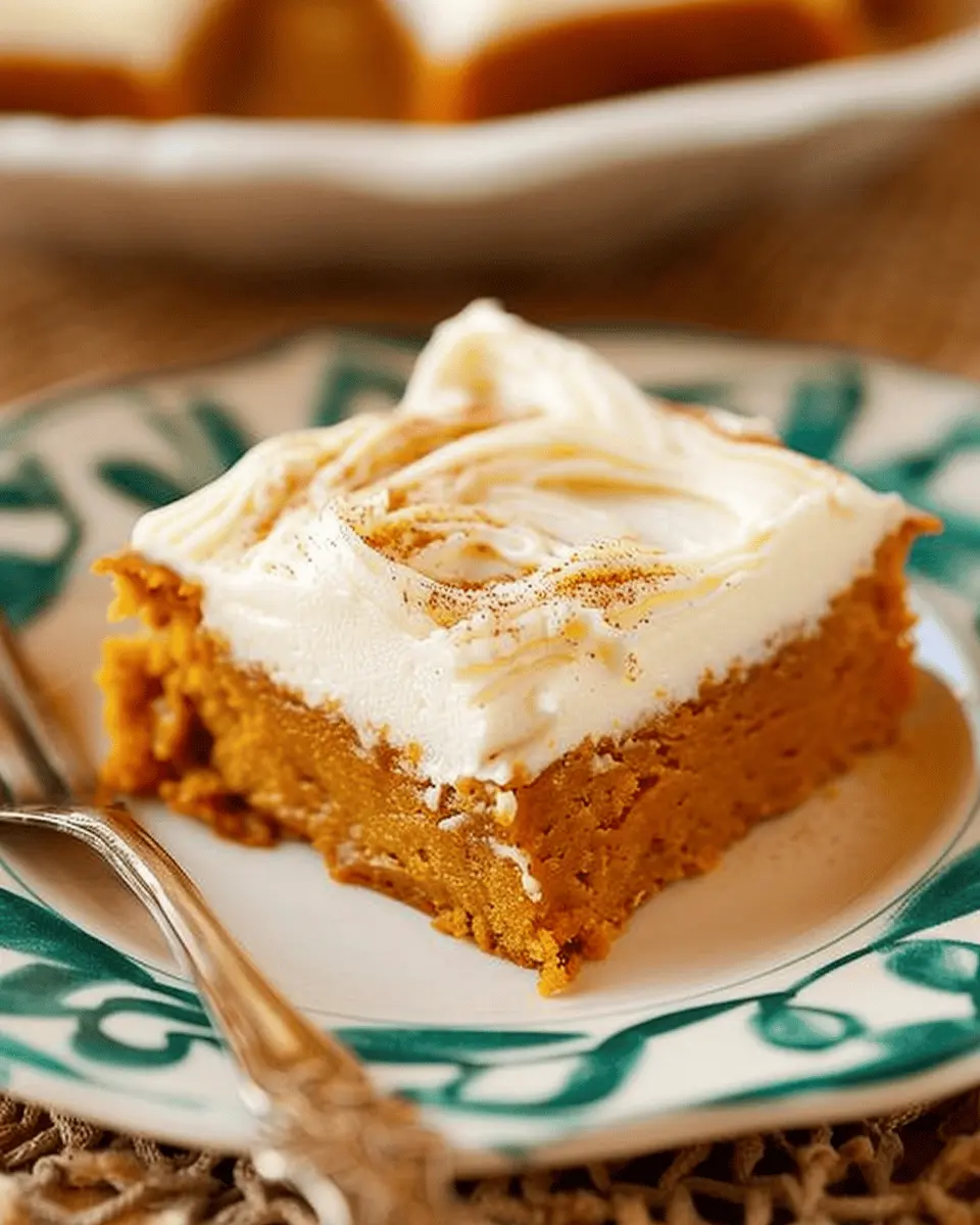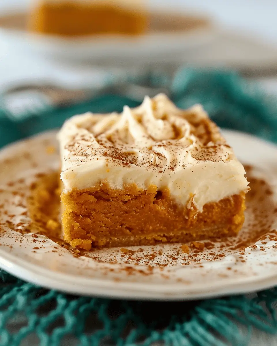 These pumpkin bars are moist and flavorful, topped with a luscious cream cheese frosting, making for a perfect autumn treat.