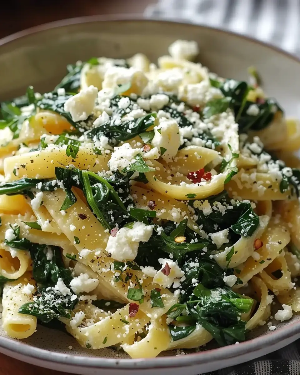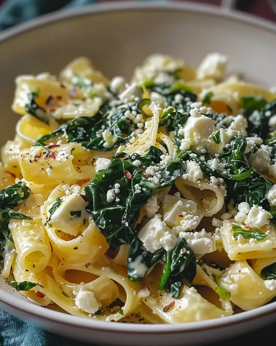 This quick spinach and feta pasta is a simple and satisfying dish perfect for busy weeknights.