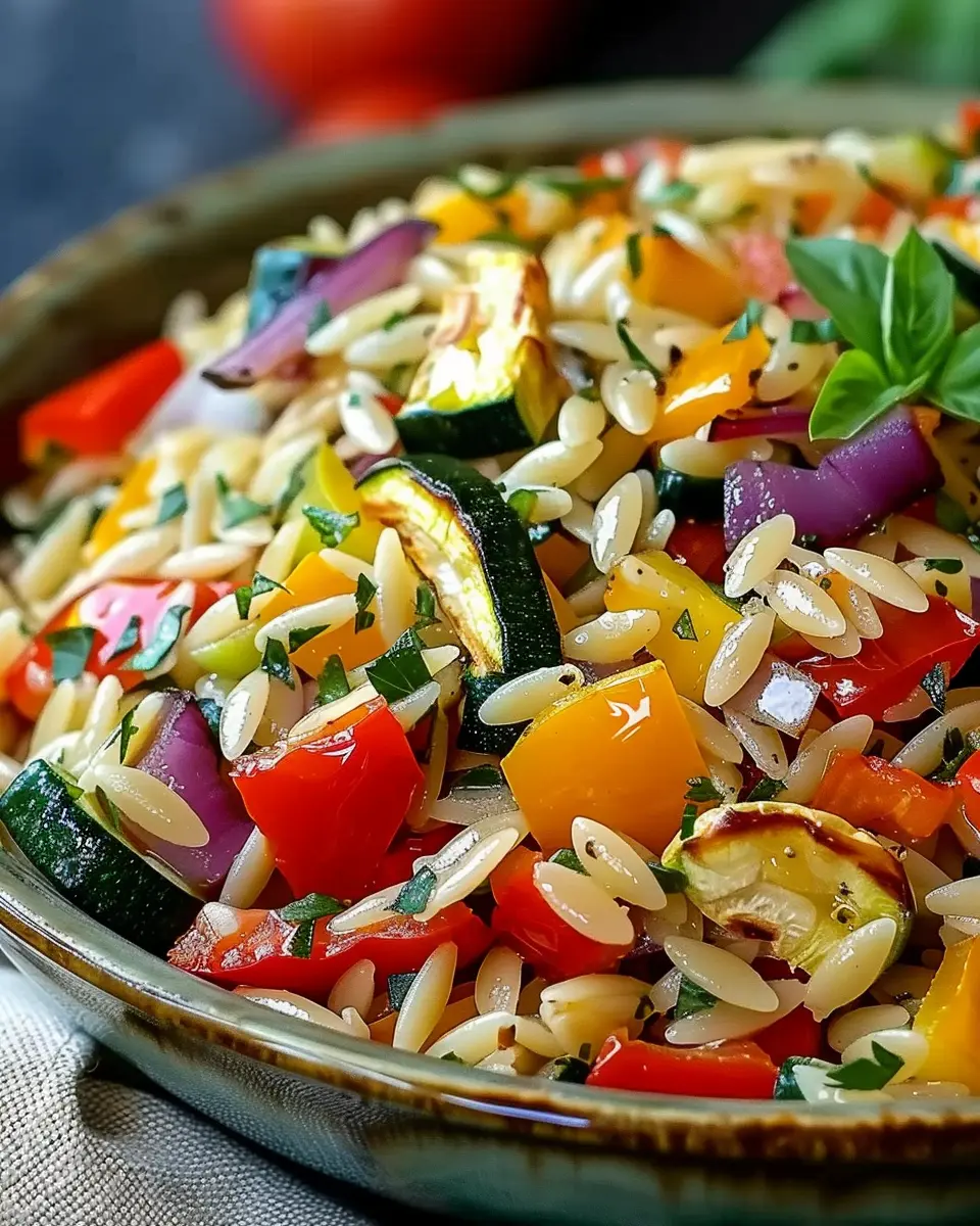 This roasted vegetable orzo recipe combines delicious roasted veggies with orzo for a nutritious and vibrant meal.