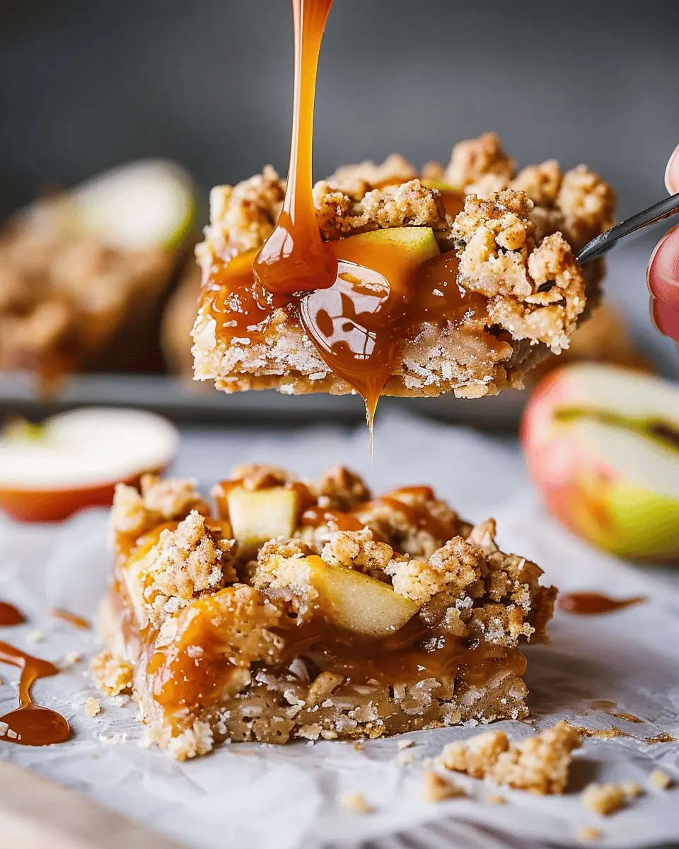 A delicious and indulgent dessert combining the flavors of salted caramel and spiced apples in a crumbly bar.