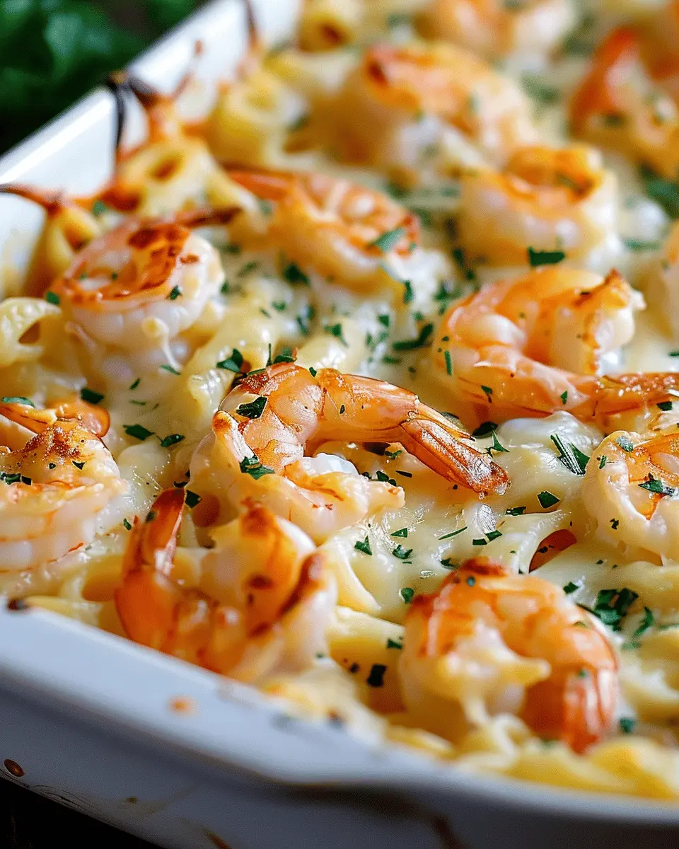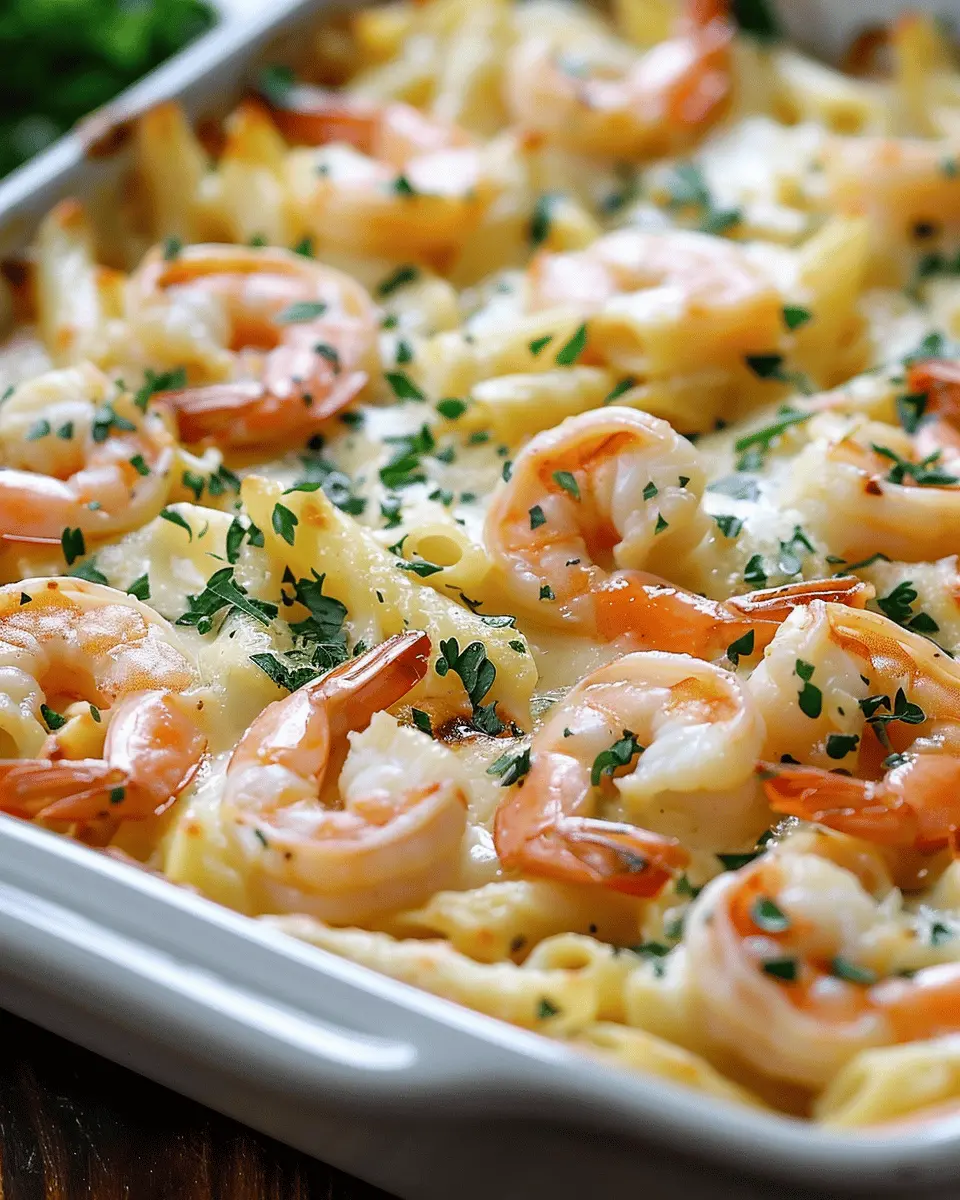 A delightful Shrimp Scampi Pasta Bake that combines the rich flavors of shrimp and garlic with cheesy pasta for a comforting dish.