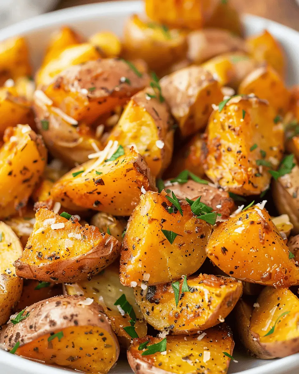 PrintSweet Potato Recipes: Easy Air Fryer Garlic Parmesan Potatoes