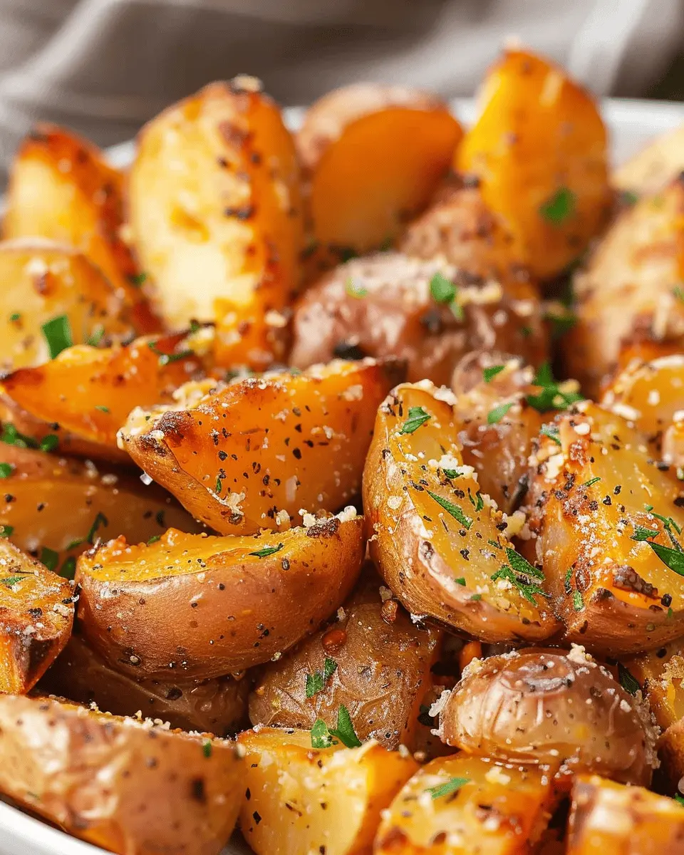 Sweet potato recipes shine when paired with the right proteins. Consider serving your Air Fryer Garlic Parmesan Potatoes alongside grilled chicken or seasoned turkey bacon for a savory twist. The buttery sweetness of the potatoes complements the savory notes from these proteins beautifully. For a heartier meal, think about pairing with beef or chicken ham. These combinations not only enhance flavor but also provide a balanced meal that keeps you satisfied longer.