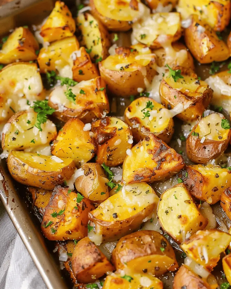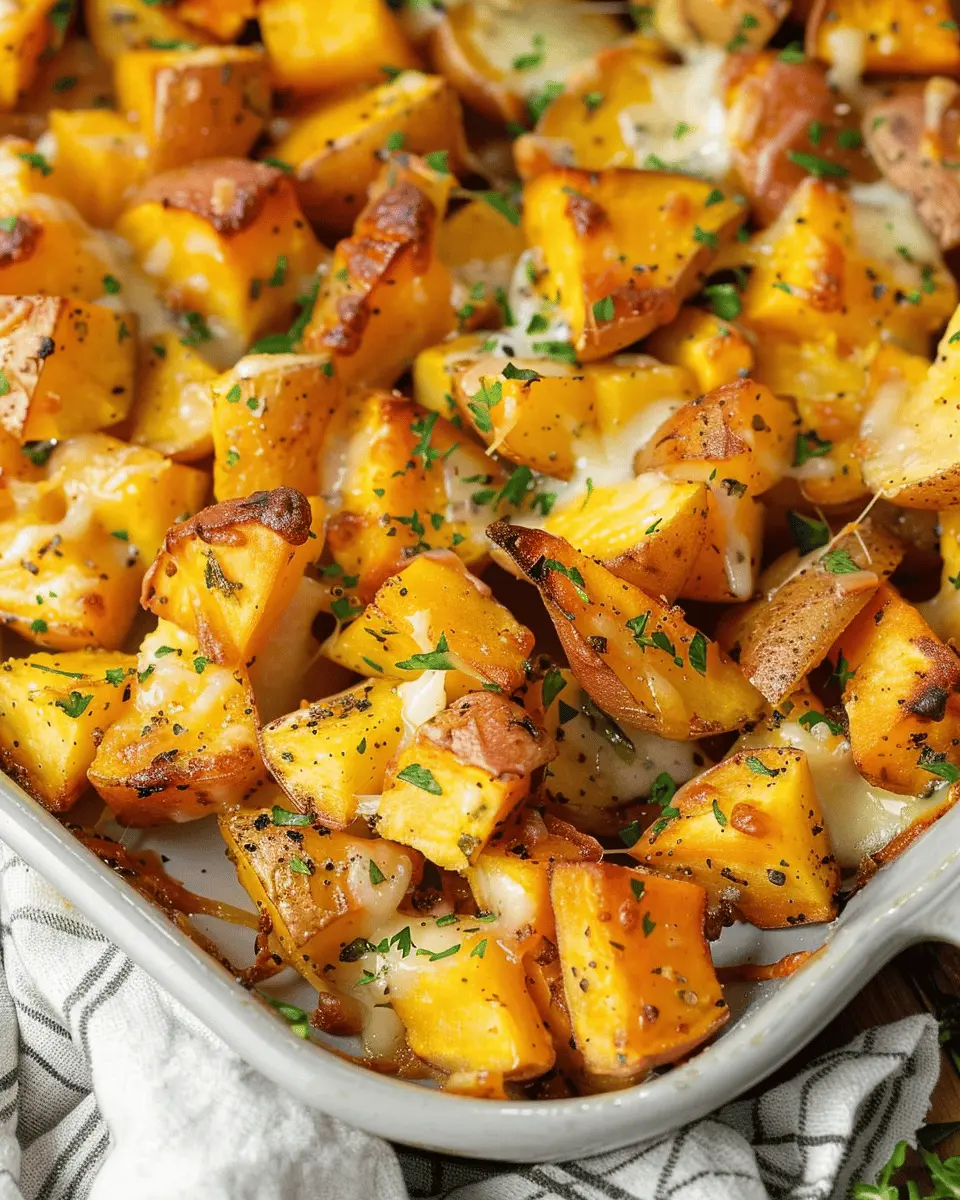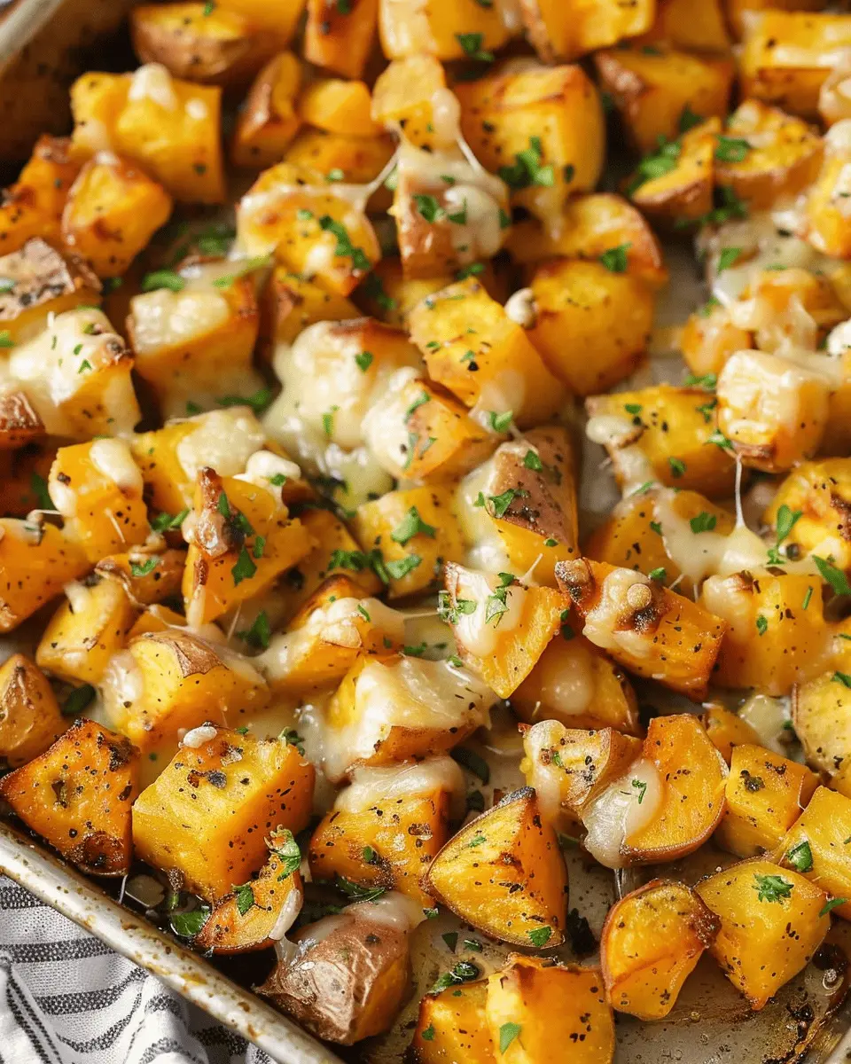 PrintSweet Potato Recipes: Indulgent Cheesy Roasted Potatoes Delight
