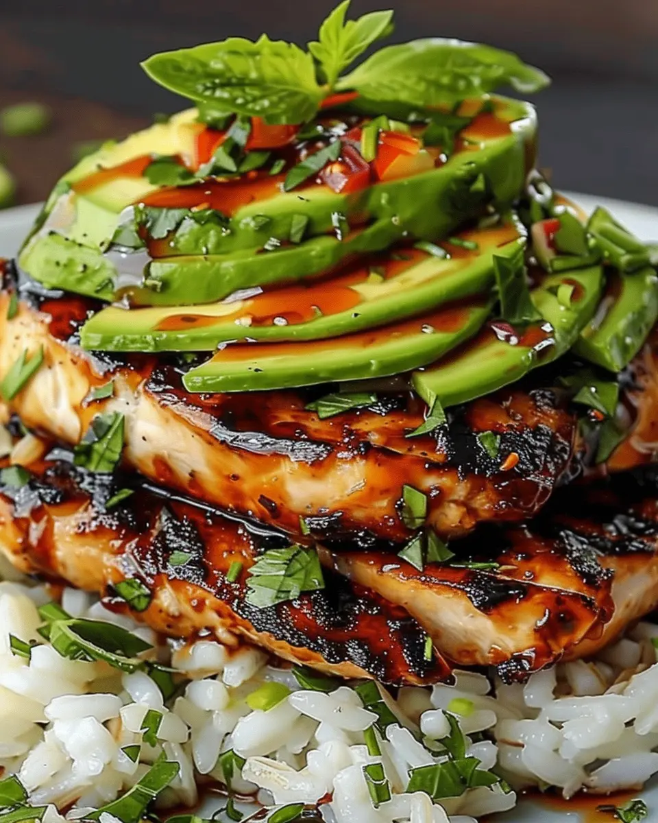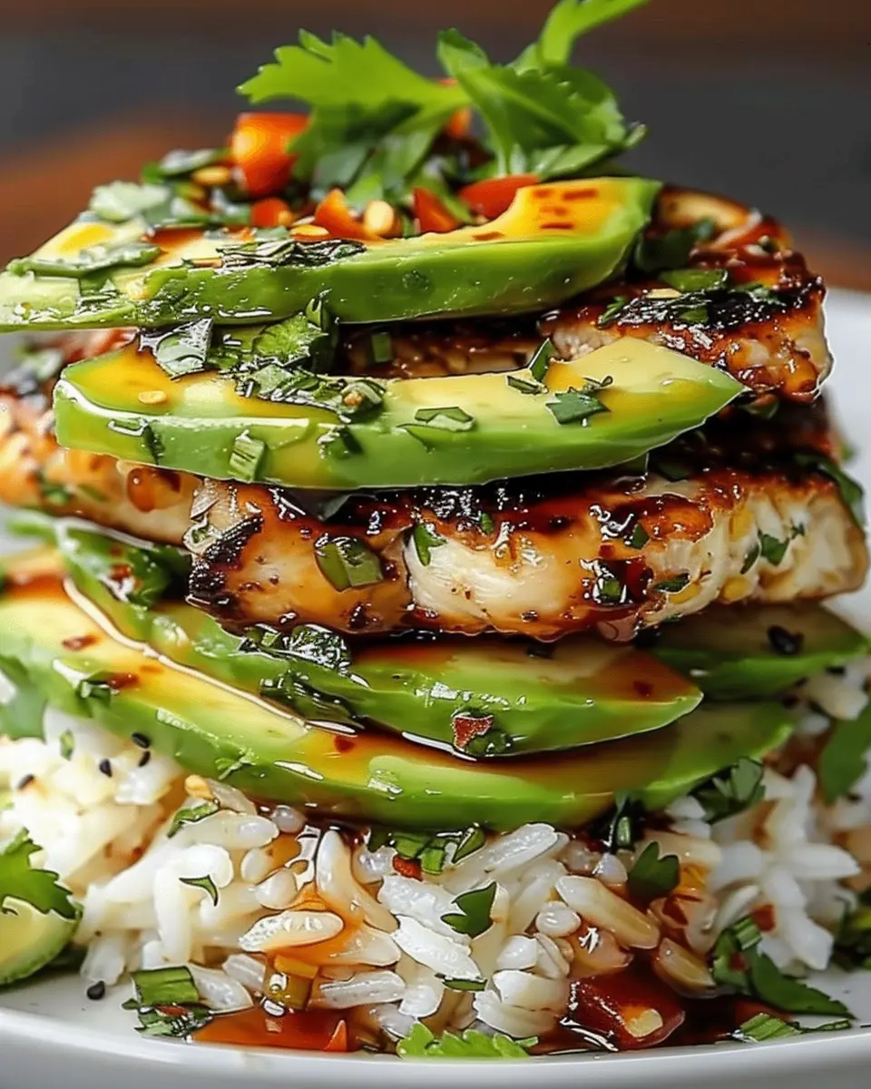 Tangy Honey Lime Chicken: A Delicious Avocado Rice Stack